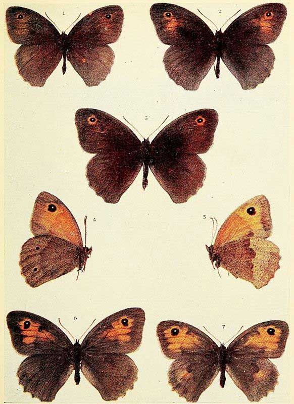 Although it does not seem to be very plentiful in fenlands, this butterfly certainly has a partiality for damp places, whether in the rides, or on the sides of woods, on hill slopes, or waste ground. Wherever there is a fairly large growth of the taller soft grasses that the caterpillars feed upon, there the butterfly may be found in July and August throughout the greater part of England and Wales. Reported from the Edinburgh district in Scotland; and in Ireland from Powerscourt and near Cork.