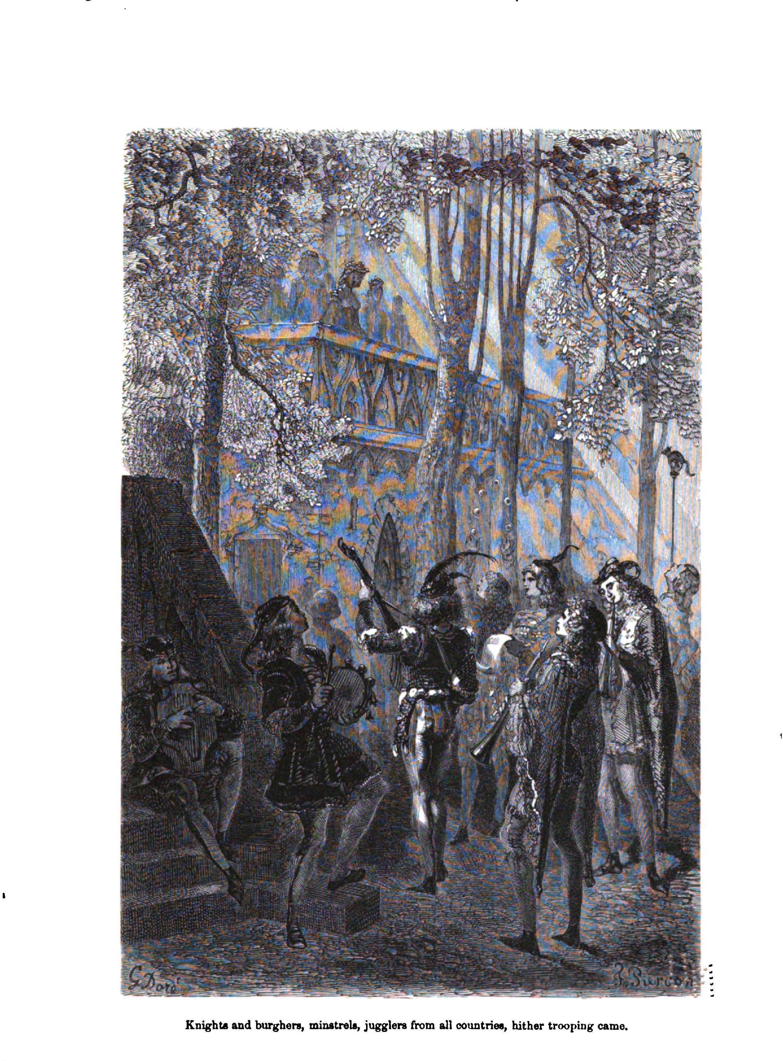 “'Tis not to fright you, good my lord, I draw this portrait of my foe,—your heart ne'er harboured fear: but true it is, he doth all men alarm; so that his aspect, at a distance seen, doth scare away all such as would defend my cause. As yet in fight invincible, he hath despoiled my lands and all the country round; I but my castle now have left to me, and that tomorrow must be given up, if God and you oppose not such decree. But I would rather suffer torture, death, than fall into his power.”