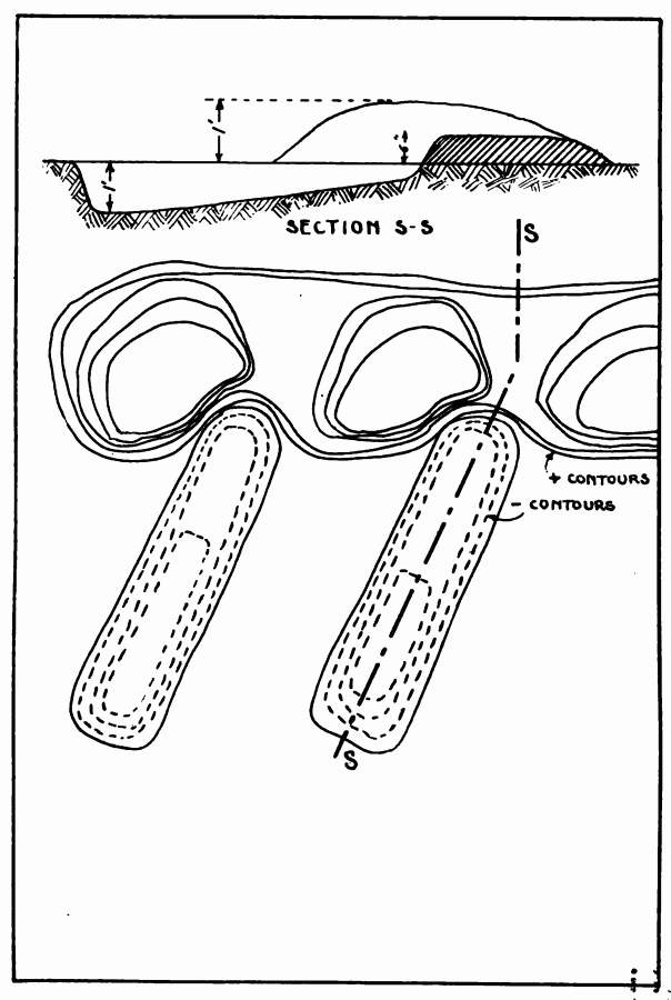 Care must be given to the question of drainage. Small ditches should be dug at intervals of a few yards to lead the water to pits in the rear. In Flanders, where we were very near river level, we installed hand and power pumps to keep the water from taking possession of the trenches. Even then, on rainy days we sometimes were in water up to our waists.