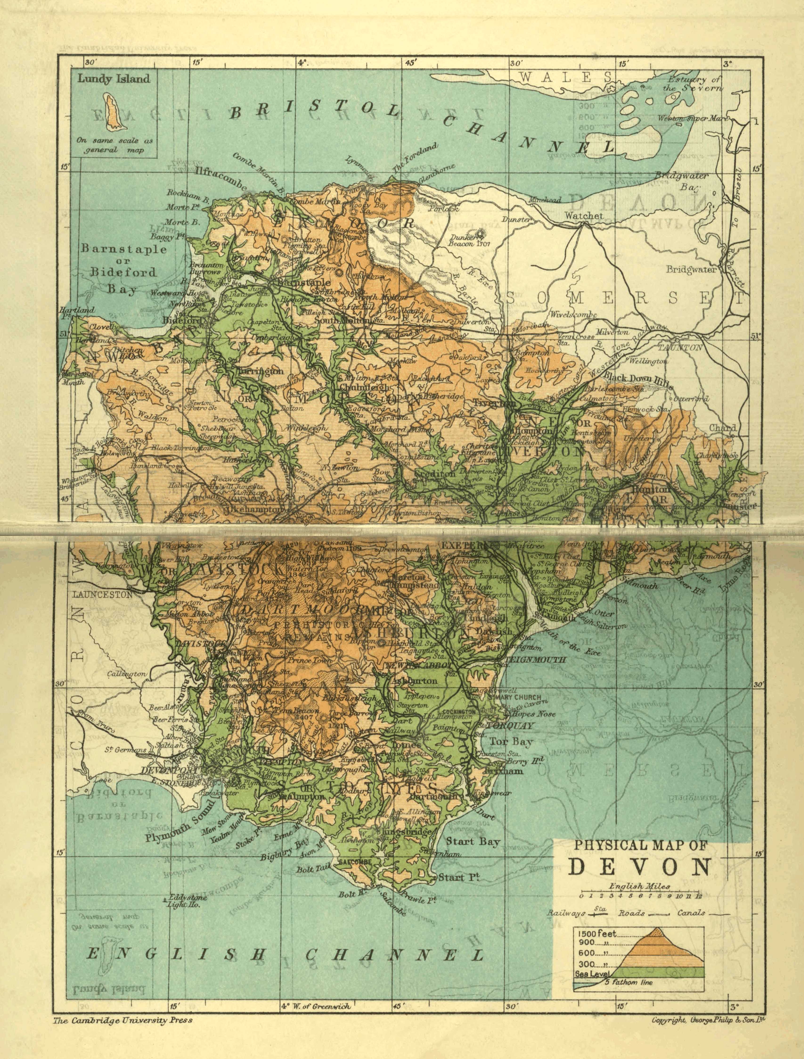 Bovey Tracy (2693), six miles north-west of Newton Abbot, is noted for beds of clay and lignite, and for its potteries. (pp. 25, 40, 114, 122, 123.)
