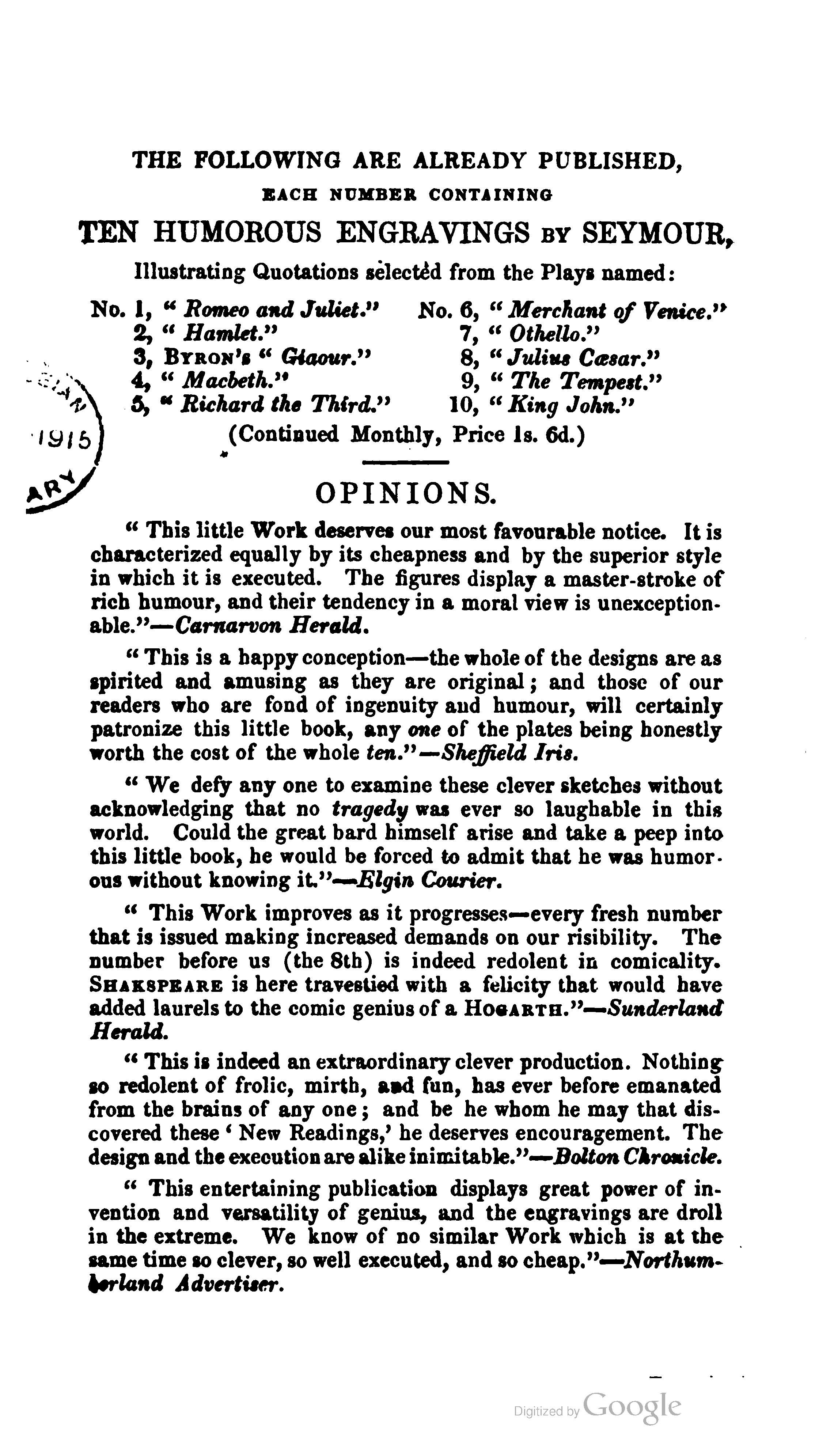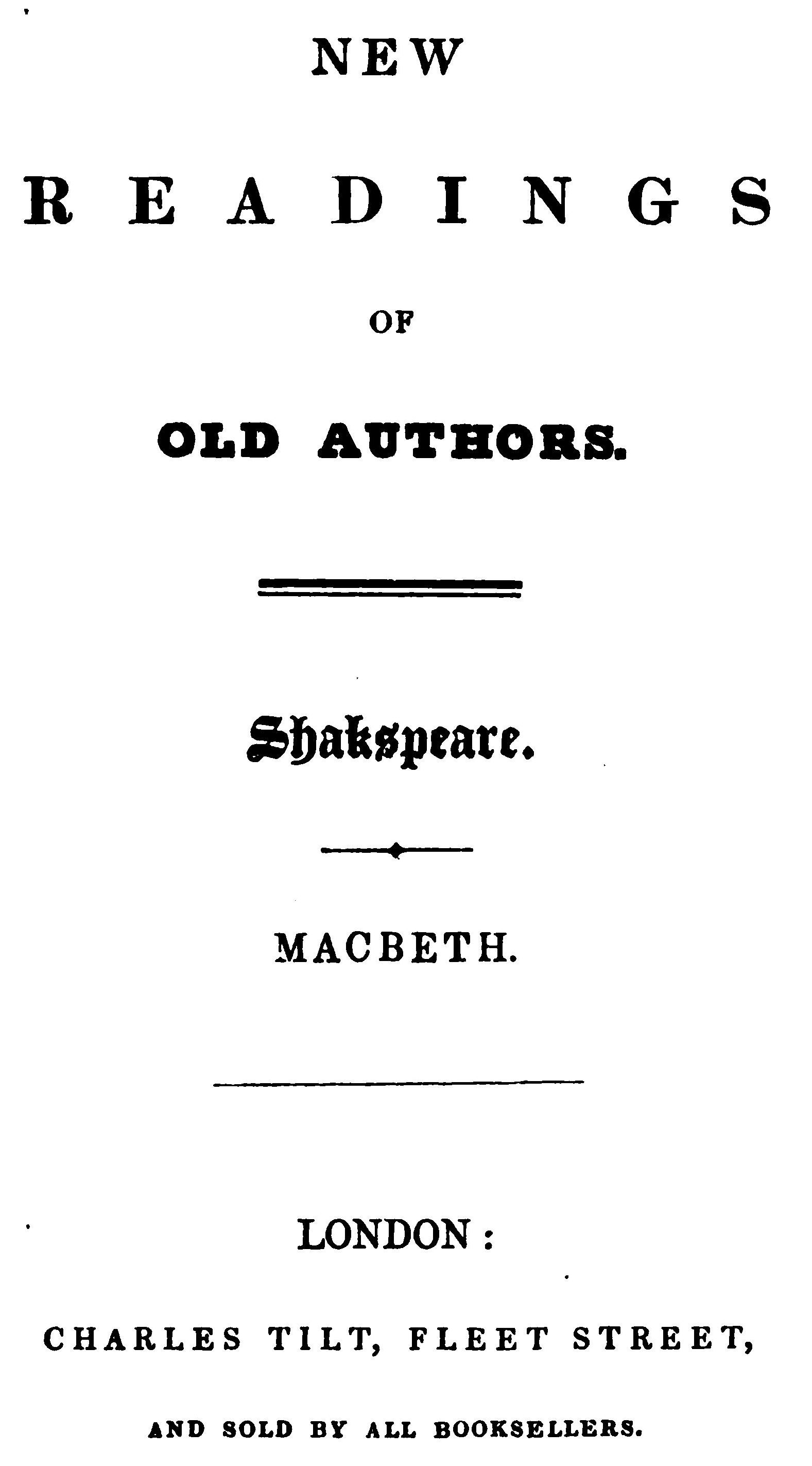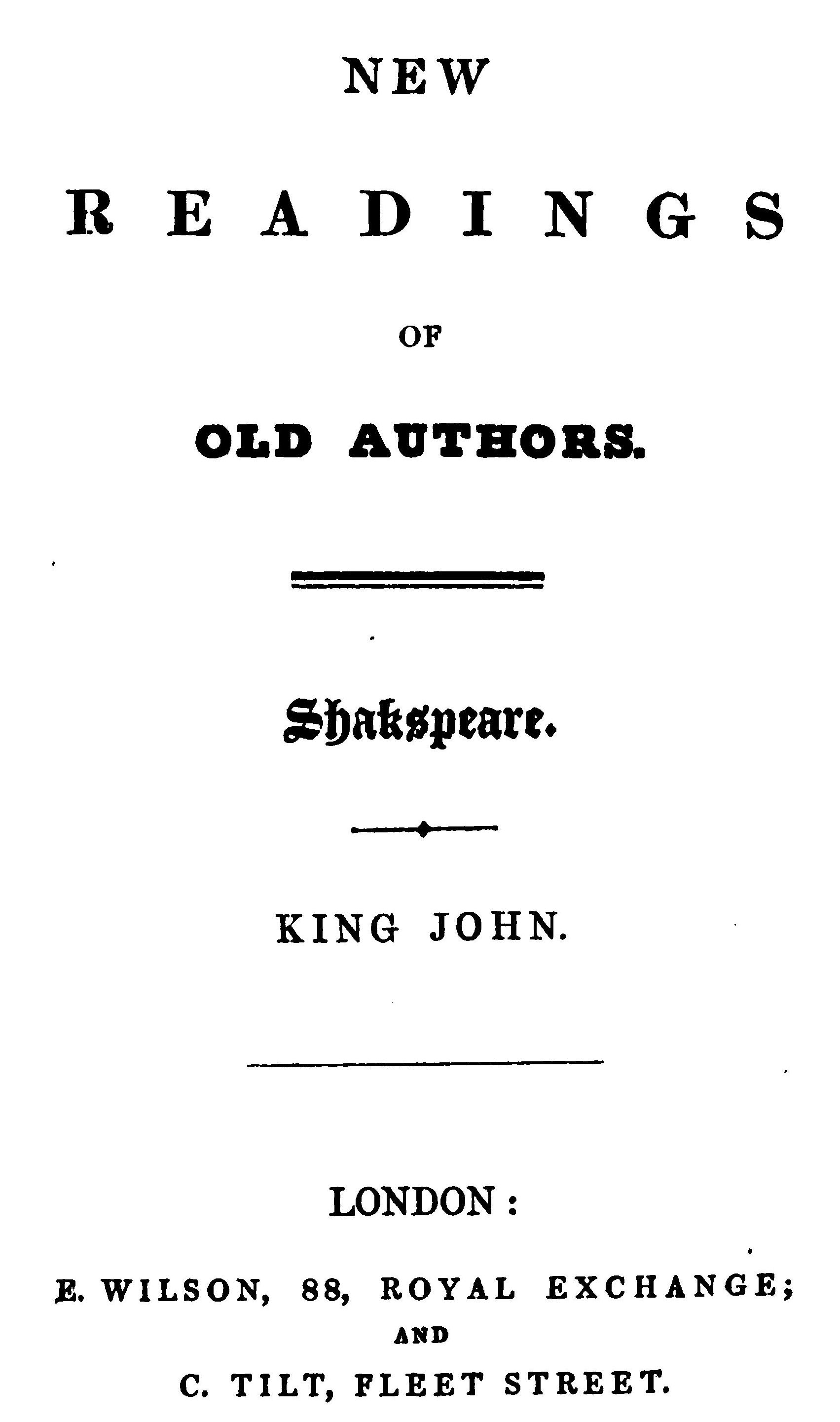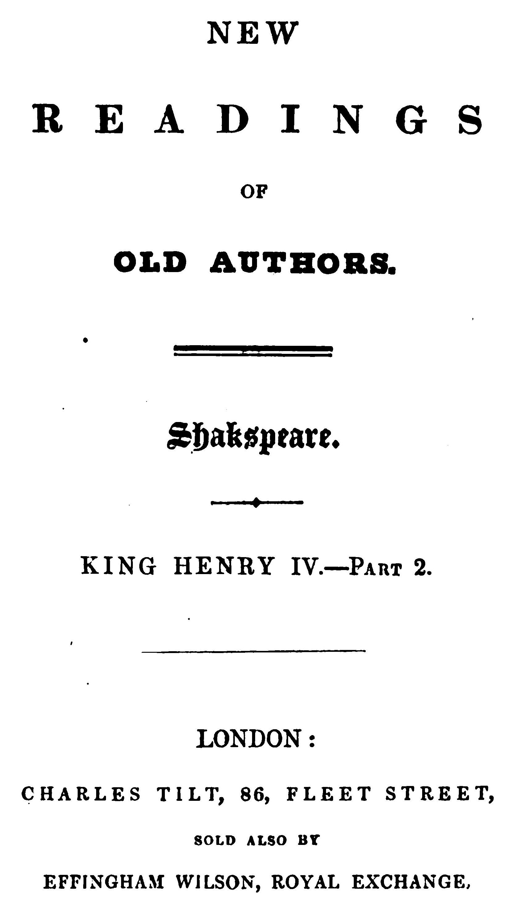 Title: New Readings of Old Authors. Shakspeare. King Henry 5th