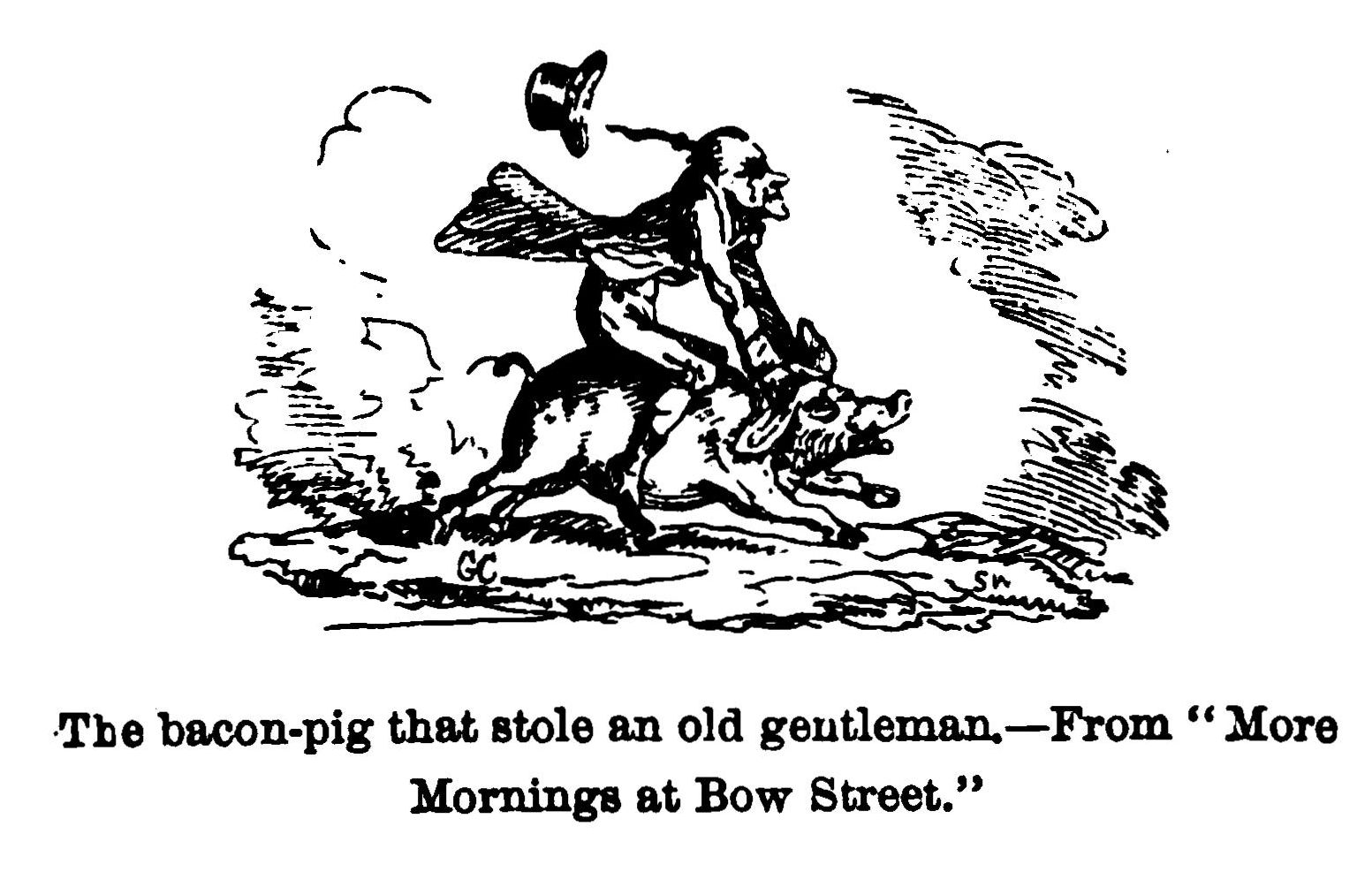 The exploits of the wild brothers, while the family lived in Dorset Street, were severely condemned by their strict mother. * Occasionally she even went the length of castigating George, when he returned home in the small hours from fairs or horse-races, or the prize-ring, far from sober; or when he had been emulating the exploits of Tom and Jerry with wild companions. He is described at this early time as gifted with extraordinary animal spirits, and filled with a reckless spirit of adventure, in the dangerous byways of London. What he saw in these days he carefully observed and set down. His field of observation stretched from the foot of the gallows to Greenwich fair; through coal-holes, cider-cellars, cribs, and prize-fighters’ taverns, Petticoat Lane, and Smith-field. Its centre was Covent Garden market, where the young bloods drank and sang and fought under the piazzas, something more than sixty years ago.