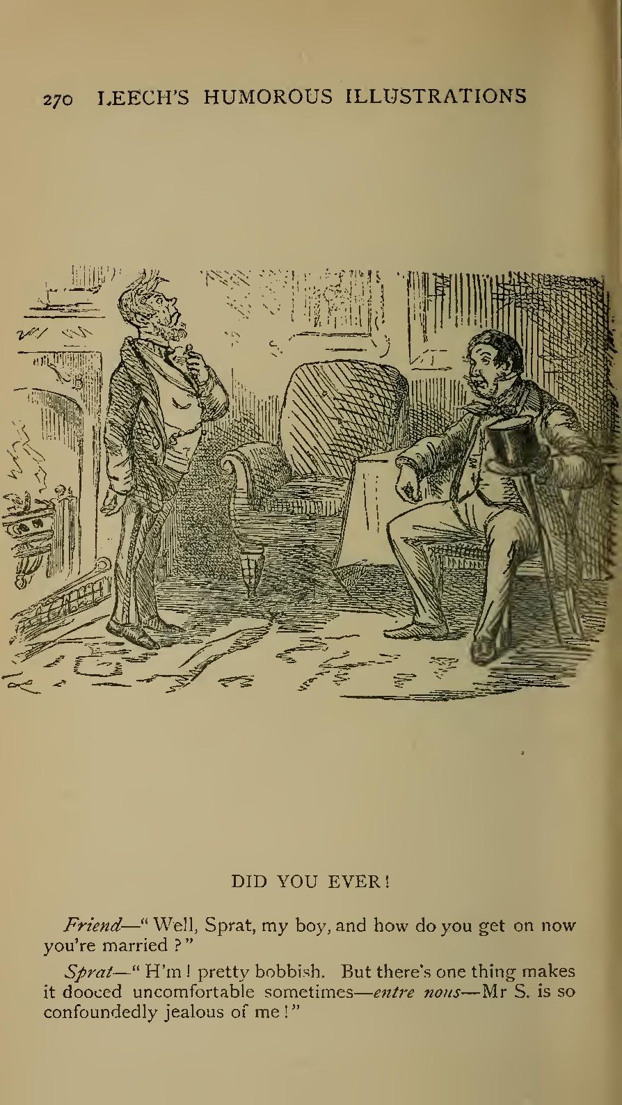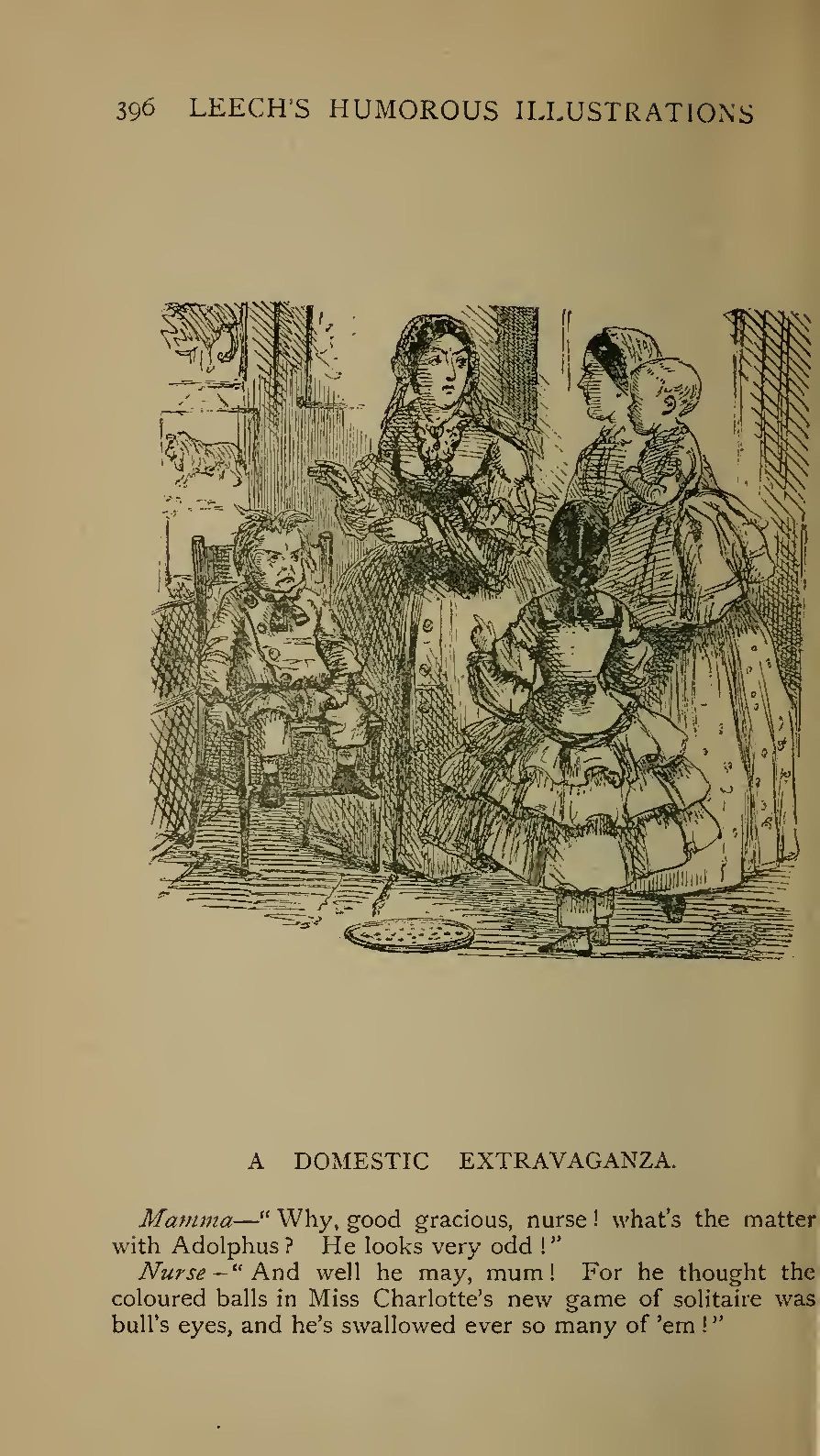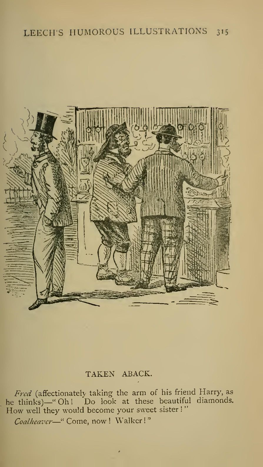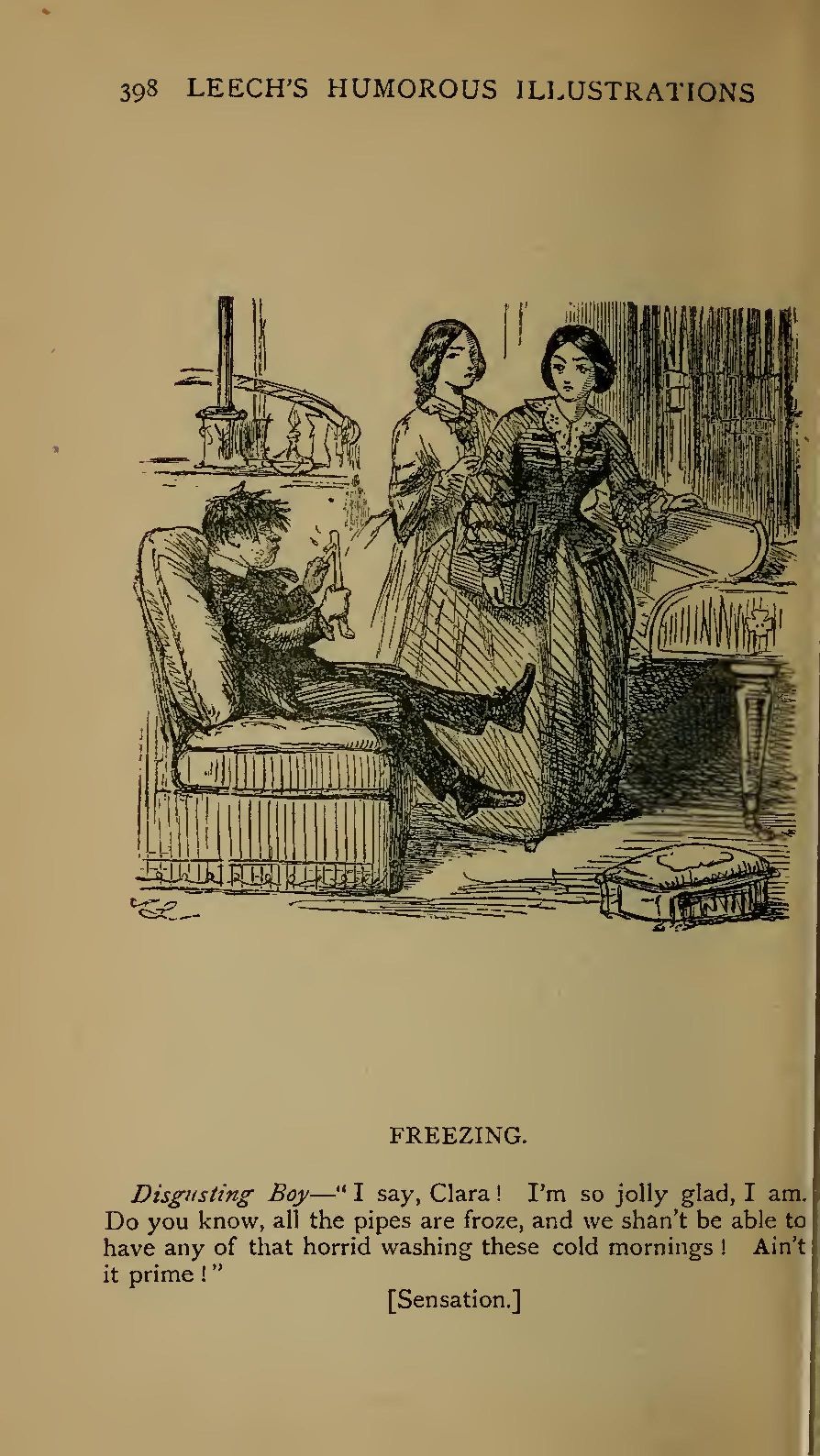 Alarming Symptoms after Having Boiled Beef and Gooseberry Pie....017 Great Want of Veneration.........................................018 Something like a Holiday.........................................019 Innocent and Amusing Tricks for Boys ............................020 Another..........................................................021 A London Gent Abroad.............................................022 Unfeeling Observation............................................023 Sailing versus Railways..........................................024 Innocence........................................................025 Never Satisfied..................................................026 Living in Hope...................................................027 Jealousy.........................................................028 A Puzzling Order.................................................029 How to get rid of a Gratis Patient...............................030 Hooking and Eyeing...............................................031 In for It........................................................032 Bless the Boy....................................................033 Pity the Sorrows of the Poor Police..............................034 Speculators......................................................035 Preparations for War.............................................036 Early Beginnings.................................................037 May difference of opinion never alter Friendship.................038 The Test of Gallantry............................................039 Interesting scene during the Canvas for Mr————...................040 Mal-apropos......................................................041 A little bit of Hunting..........................................042 Alarming.........................................................043 An Impudent Minx.................................................044 Very Acute.......................................................045 Men of Business..................................................046 Delicacy of the Season...........................................047 Unlucky .........................................................048 Nothing like warm Bathing........................................049 The Ruling Passion...............................................050 Different People have Different Opinions.........................051 The Alderman's Advice to his Son.................................052 An Omnibus Incident..............................................053 Very Proper Diet for Warm Weather................................054 Mr. Verdant's attempt at Bookmaking .............................055 Easily Satisfied.................................................056 The Chatalaine—a really useful Present...........................057 Domestic Bliss...................................................058 Rather Disappointing.............................................059 Domestic Bliss-Time 3.30 — Thermometer 30 degrees................060 A Dumb Waiter....................................................061 Murder Will Out..................................................062 Different People have Different Opinions.........................063 Advice Gratis....................................................064 Grandmamma is supposed to have given Tom some plums..............065 The Rising Generation............................................066 Sour Grapes......................................................067 Dog Days.........................................................068 Hall along of the Betting Offices................................069 A Romance of Roast Ducks.........................................070 Delicate.........................................................071 A Great Loss.....................................................072 Rather a Bad Look-out............................................073 Curious Effect of Relaxing Air...................................074 Oh! The Curtains.................................................075 A Left-handed Compliment.........................................076 Taken at his Word................................................077 The Opera........................................................078 Fishing off a Watering Place.....................................079 The Conservatory.................................................080 The Garret.......................................................081 Late Hours.......................................................082 No Place like Home when the family are at a Watering Place.......083 A British Ruffian................................................084 Very Considerate.................................................085 Filling up the Census Paper......................................086 Reward of Merit..................................................087 Doing a Little Bill..............................................088 Alarming.........................................................089 Domestic Bliss...................................................090 Returning from the Seaside—A Little Commission...................091 A Jolly Dog......................................................092 A Bon-bon from a Juvenile Party..................................093 Throwing stones through ice......................................094 True Respectability..............................................095 A Young Gentleman and Scholar....................................096 Perfect Sincerity; or Thinking Aloud.............................097 Perfect Sincerity; or Thinking Aloud.............................098 Perfect Sincerity; or Thinking Aloud.............................099 No Doubt.........................................................100 Very Low People..................................................101 A Weighty Matter.................................................102 A Cheap Day's Hunting, No. 1........................