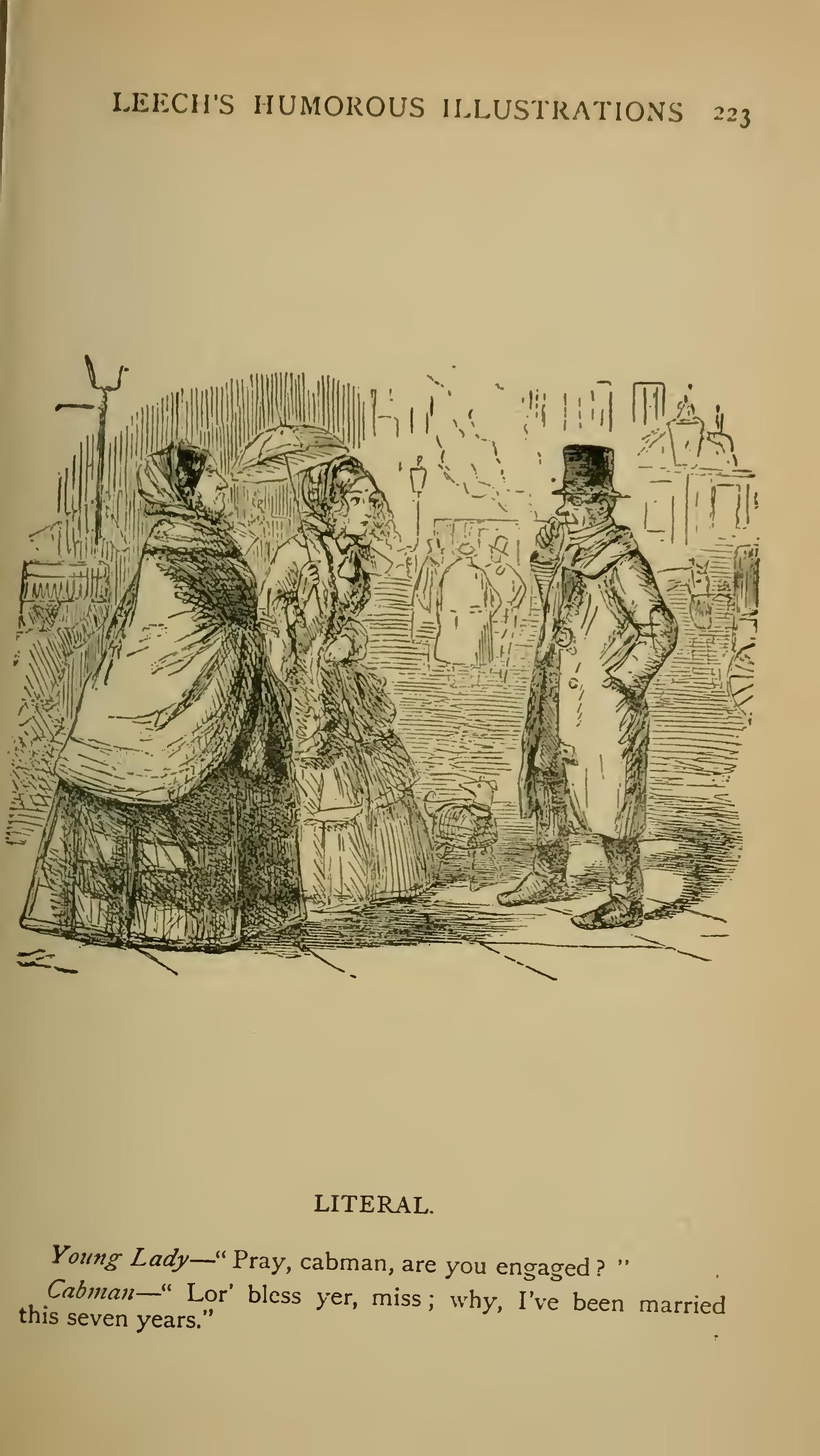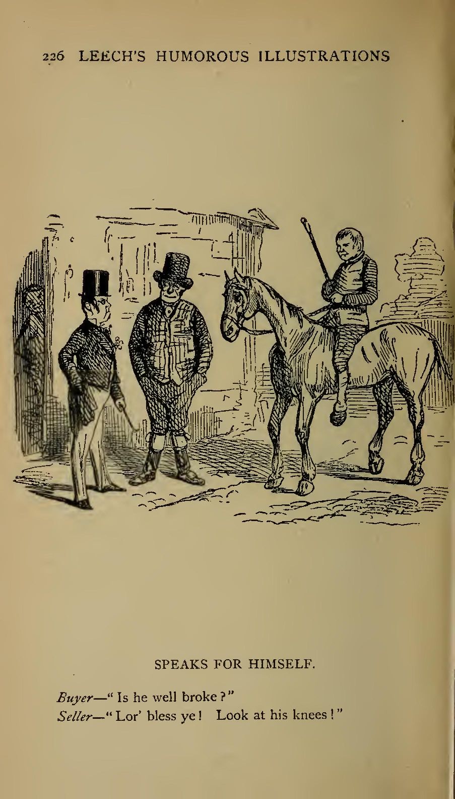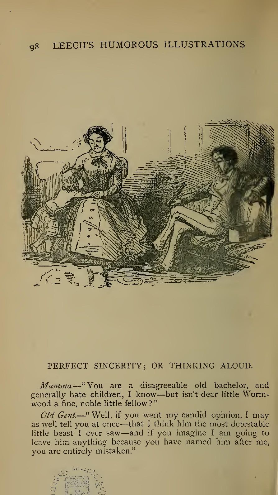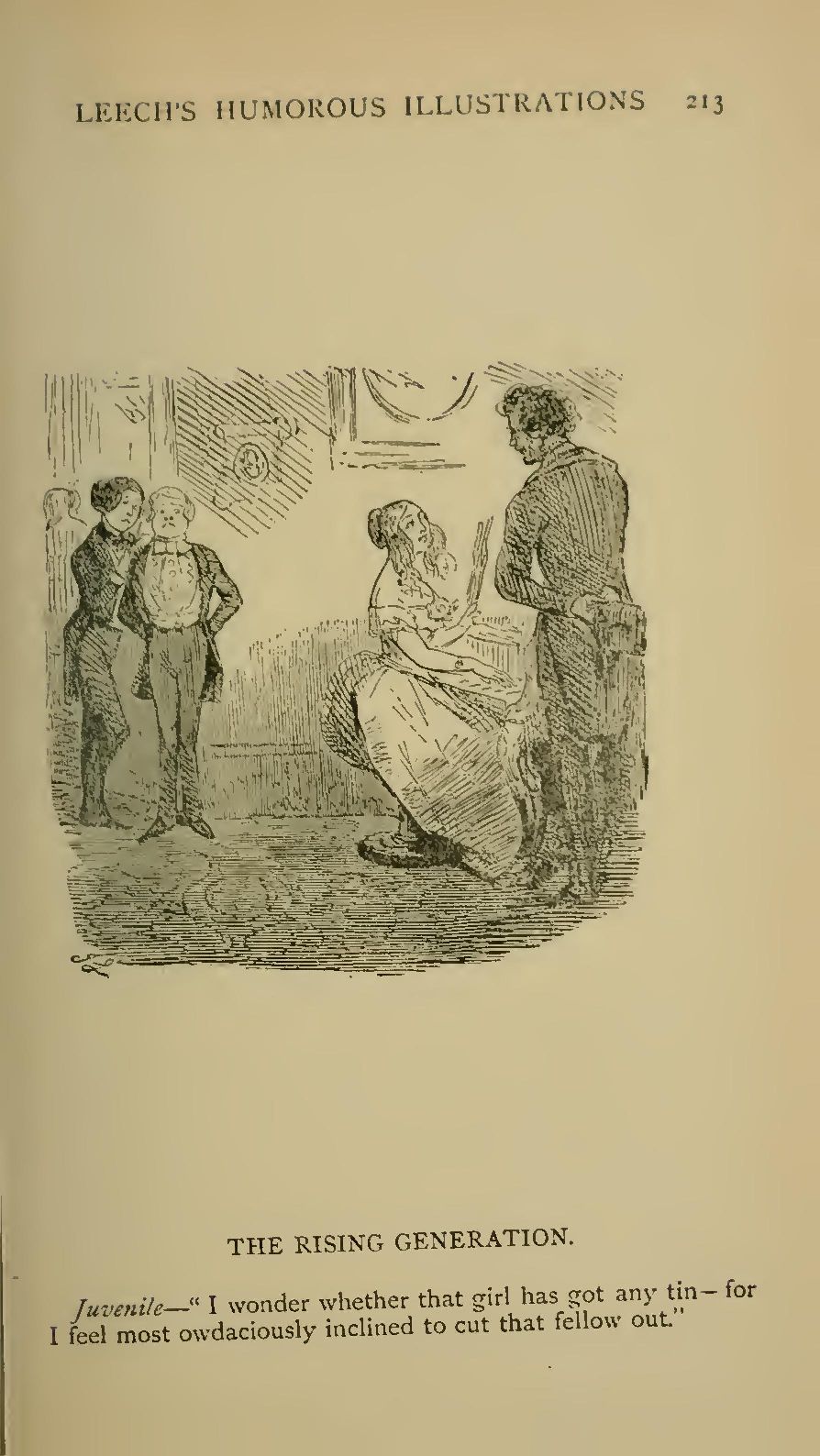 Alarming Symptoms after Having Boiled Beef and Gooseberry Pie....017 Great Want of Veneration.........................................018 Something like a Holiday.........................................019 Innocent and Amusing Tricks for Boys ............................020 Another..........................................................021 A London Gent Abroad.............................................022 Unfeeling Observation............................................023 Sailing versus Railways..........................................024 Innocence........................................................025 Never Satisfied..................................................026 Living in Hope...................................................027 Jealousy.........................................................028 A Puzzling Order.................................................029 How to get rid of a Gratis Patient...............................030 Hooking and Eyeing...............................................031 In for It........................................................032 Bless the Boy....................................................033 Pity the Sorrows of the Poor Police..............................034 Speculators......................................................035 Preparations for War.............................................036 Early Beginnings.................................................037 May difference of opinion never alter Friendship.................038 The Test of Gallantry............................................039 Interesting scene during the Canvas for Mr————...................040 Mal-apropos......................................................041 A little bit of Hunting..........................................042 Alarming.........................................................043 An Impudent Minx.................................................044 Very Acute.......................................................045 Men of Business..................................................046 Delicacy of the Season...........................................047 Unlucky .........................................................048 Nothing like warm Bathing........................................049 The Ruling Passion...............................................050 Different People have Different Opinions.........................051 The Alderman's Advice to his Son.................................052 An Omnibus Incident..............................................053 Very Proper Diet for Warm Weather................................054 Mr. Verdant's attempt at Bookmaking .............................055 Easily Satisfied.................................................056 The Chatalaine—a really useful Present...........................057 Domestic Bliss...................................................058 Rather Disappointing.............................................059 Domestic Bliss-Time 3.30 — Thermometer 30 degrees................060 A Dumb Waiter....................................................061 Murder Will Out..................................................062 Different People have Different Opinions.........................063 Advice Gratis....................................................064 Grandmamma is supposed to have given Tom some plums..............065 The Rising Generation............................................066 Sour Grapes......................................................067 Dog Days.........................................................068 Hall along of the Betting Offices................................069 A Romance of Roast Ducks.........................................070 Delicate.........................................................071 A Great Loss.....................................................072 Rather a Bad Look-out............................................073 Curious Effect of Relaxing Air...................................074 Oh! The Curtains.................................................075 A Left-handed Compliment.........................................076 Taken at his Word................................................077 The Opera........................................................078 Fishing off a Watering Place.....................................079 The Conservatory.................................................080 The Garret.......................................................081 Late Hours.......................................................082 No Place like Home when the family are at a Watering Place.......083 A British Ruffian................................................084 Very Considerate.................................................085 Filling up the Census Paper......................................086 Reward of Merit..................................................087 Doing a Little Bill..............................................088 Alarming.........................................................089 Domestic Bliss...................................................090 Returning from the Seaside—A Little Commission...................091 A Jolly Dog......................................................092 A Bon-bon from a Juvenile Party..................................093 Throwing stones through ice......................................094 True Respectability..............................................095 A Young Gentleman and Scholar....................................096 Perfect Sincerity; or Thinking Aloud.............................097 Perfect Sincerity; or Thinking Aloud.............................098 Perfect Sincerity; or Thinking Aloud.............................099 No Doubt.........................................................100 Very Low People..................................................101 A Weighty Matter.................................................102 A Cheap Day's Hunting, No. 1........................