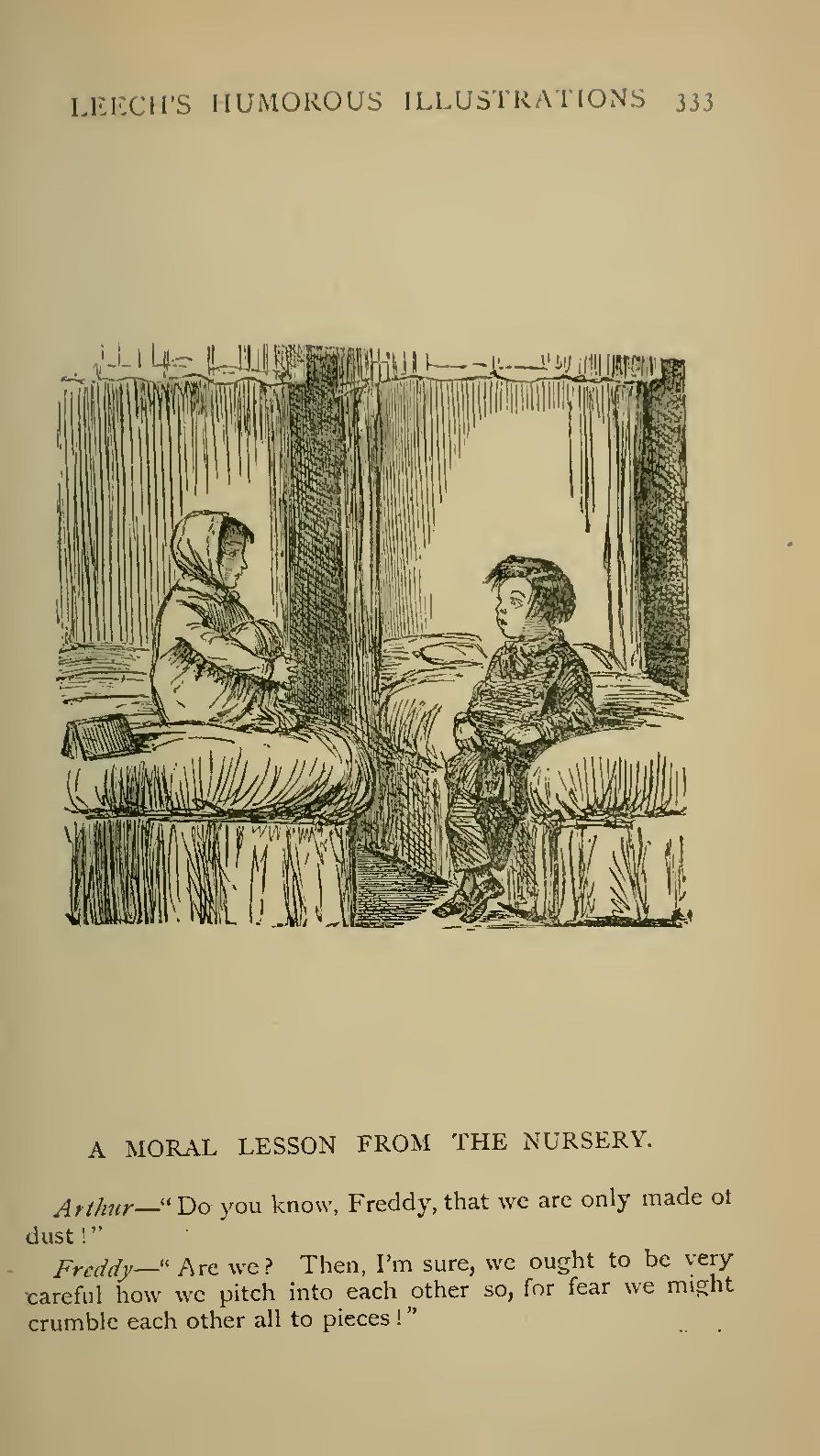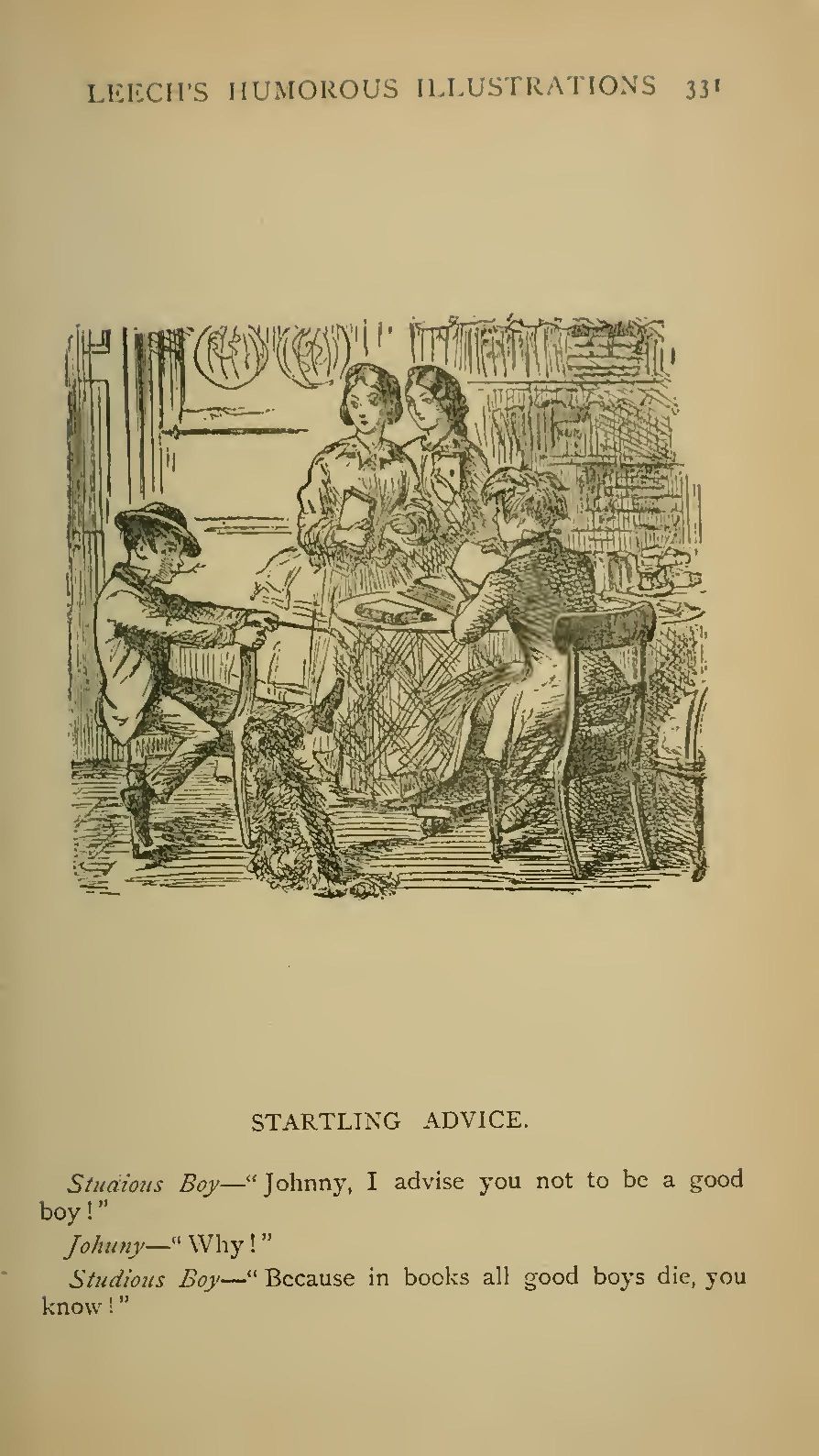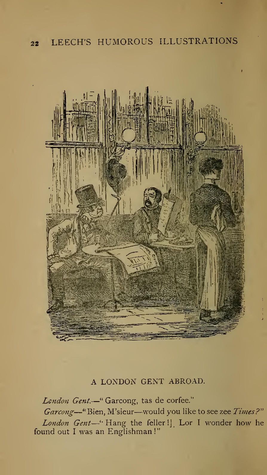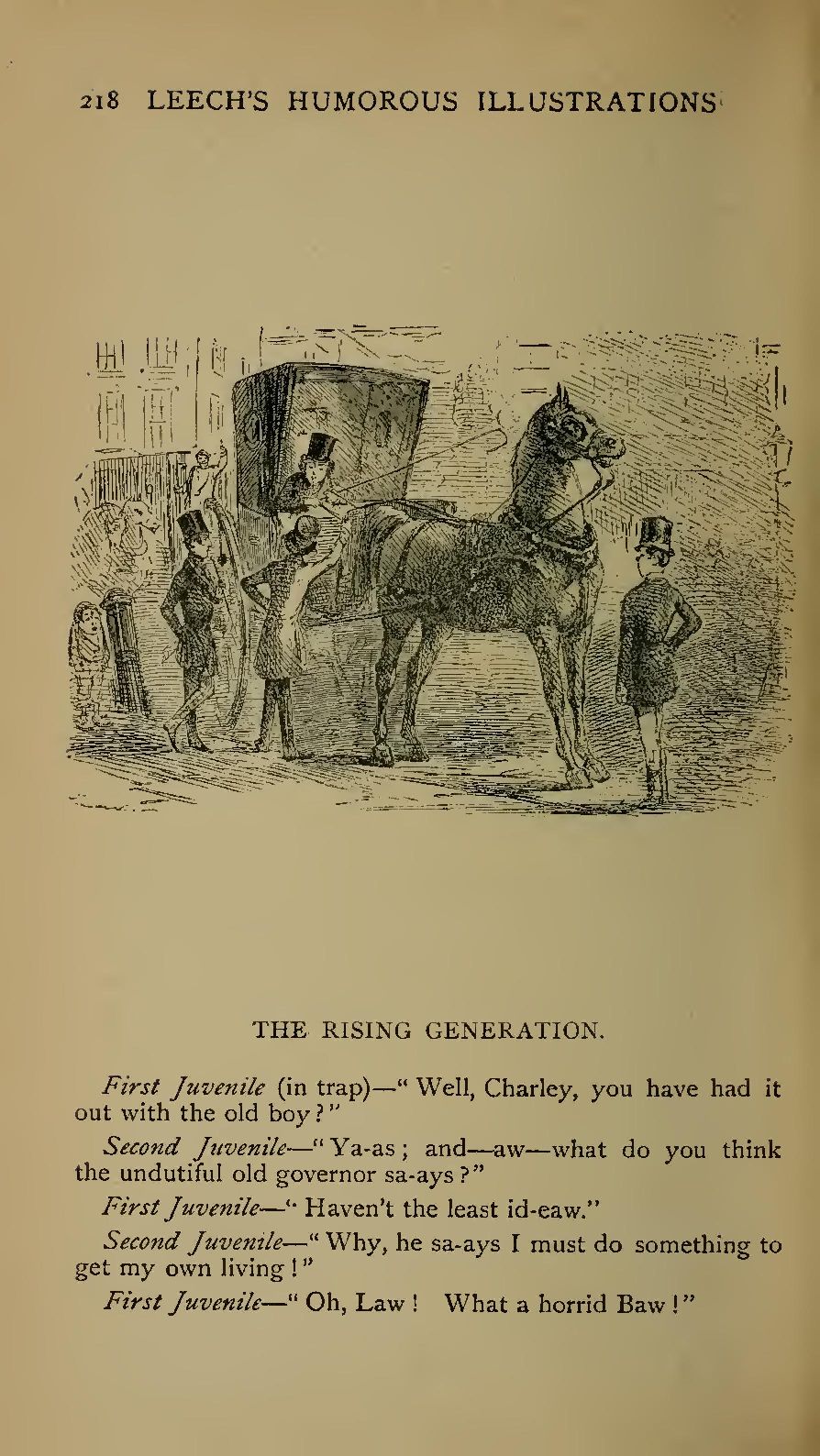 Alarming Symptoms after Having Boiled Beef and Gooseberry Pie....017 Great Want of Veneration.........................................018 Something like a Holiday.........................................019 Innocent and Amusing Tricks for Boys ............................020 Another..........................................................021 A London Gent Abroad.............................................022 Unfeeling Observation............................................023 Sailing versus Railways..........................................024 Innocence........................................................025 Never Satisfied..................................................026 Living in Hope...................................................027 Jealousy.........................................................028 A Puzzling Order.................................................029 How to get rid of a Gratis Patient...............................030 Hooking and Eyeing...............................................031 In for It........................................................032 Bless the Boy....................................................033 Pity the Sorrows of the Poor Police..............................034 Speculators......................................................035 Preparations for War.............................................036 Early Beginnings.................................................037 May difference of opinion never alter Friendship.................038 The Test of Gallantry............................................039 Interesting scene during the Canvas for Mr————...................040 Mal-apropos......................................................041 A little bit of Hunting..........................................042 Alarming.........................................................043 An Impudent Minx.................................................044 Very Acute.......................................................045 Men of Business..................................................046 Delicacy of the Season...........................................047 Unlucky .........................................................048 Nothing like warm Bathing........................................049 The Ruling Passion...............................................050 Different People have Different Opinions.........................051 The Alderman's Advice to his Son.................................052 An Omnibus Incident..............................................053 Very Proper Diet for Warm Weather................................054 Mr. Verdant's attempt at Bookmaking .............................055 Easily Satisfied.................................................056 The Chatalaine—a really useful Present...........................057 Domestic Bliss...................................................058 Rather Disappointing.............................................059 Domestic Bliss-Time 3.30 — Thermometer 30 degrees................060 A Dumb Waiter....................................................061 Murder Will Out..................................................062 Different People have Different Opinions.........................063 Advice Gratis....................................................064 Grandmamma is supposed to have given Tom some plums..............065 The Rising Generation............................................066 Sour Grapes......................................................067 Dog Days.........................................................068 Hall along of the Betting Offices................................069 A Romance of Roast Ducks.........................................070 Delicate.........................................................071 A Great Loss.....................................................072 Rather a Bad Look-out............................................073 Curious Effect of Relaxing Air...................................074 Oh! The Curtains.................................................075 A Left-handed Compliment.........................................076 Taken at his Word................................................077 The Opera........................................................078 Fishing off a Watering Place.....................................079 The Conservatory.................................................080 The Garret.......................................................081 Late Hours.......................................................082 No Place like Home when the family are at a Watering Place.......083 A British Ruffian................................................084 Very Considerate.................................................085 Filling up the Census Paper......................................086 Reward of Merit..................................................087 Doing a Little Bill..............................................088 Alarming.........................................................089 Domestic Bliss...................................................090 Returning from the Seaside—A Little Commission...................091 A Jolly Dog......................................................092 A Bon-bon from a Juvenile Party..................................093 Throwing stones through ice......................................094 True Respectability..............................................095 A Young Gentleman and Scholar....................................096 Perfect Sincerity; or Thinking Aloud.............................097 Perfect Sincerity; or Thinking Aloud.............................098 Perfect Sincerity; or Thinking Aloud.............................099 No Doubt.........................................................100 Very Low People..................................................101 A Weighty Matter.................................................102 A Cheap Day's Hunting, No. 1........................