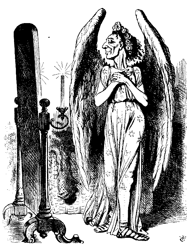 Throughout the Mutiny Punch was hostile to Canning, and his "Clemency," representing him as unduly tender to the mutineers and invariably interfering on their behalf. This criticism reaches its height of injustice to the statesman who uttered and acted on the noble maxim "I will not govern in anger," in the mock proclamation which appears in the issue of October 24. There was probably better ground for the imaginary conversation between the Duke of Cambridge, as Commander-in-Chief, and Lords Lucan and Cardigan, in which the two latter noblemen sneer at the services of Havelock. This disparagement, be it noted, was not confined to the Crimean cavalry commanders; Mr. Gladstone declined to vote for the grant of a pension, and was in consequence associated by Punch with the Manchester School, whose pacificist organ, the Star, had been savagely burlesqued in the issue of October 31. Meanwhile the tide had turned in the war by the capture of Delhi and the first relief of Lucknow. The toll of heroic lives among our leaders had been heavy—Henry Lawrence, Nicholson and Havelock at the end of the year—but Punch was true to his old democratic instincts in recording the exploits of all ranks. He was eloquent in his appeal for the assistance of Miss Salkeld, sister of Lieutenant Salkeld, who lost his life in the blowing in of the Kashmir gate at Delhi. But he does not forget Salkeld's humbler associates, who with him "rushed upon death to make way for the bayonets of England when the great stronghold of treason was stormed":—