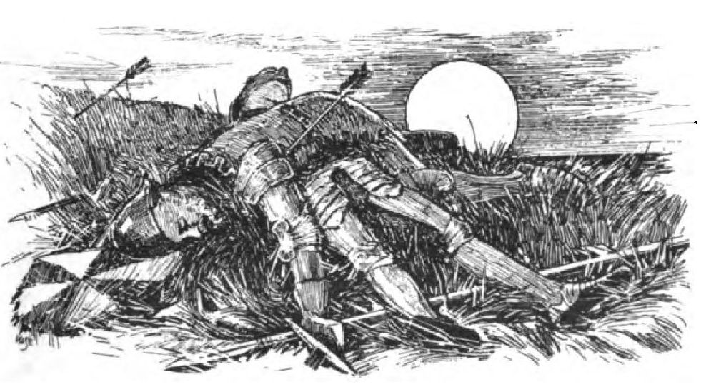 There lies a knight slain under his shield.