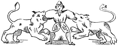 With the Romans only we begin to have distinct data. In the Eternal City, some streets, as in our mediæval towns, derived their names from signs. Such, for instance, was the vicus Ursi Pileati, (the street of “The Bear with the Hat on,”) in the Esquiliæ. The nature of their signs, also, is well known. The Bush, their tavern-sign, gave rise to the proverb, “Vino vendibili suspensa hedera non opus est;” and hence we derive our sign of the Bush,[2] and our proverb, “Good Wine needs no Bush.” An ansa, or handle of a pitcher, was the sign of their post-houses, (stathmoi or allagæ,) and hence these establishments were afterwards denominated ansæ.[4] That they also had painted signs, or exterior decorations which served their purpose, is clearly evident from various authors:—