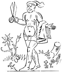 “Jam ostendamcujus modi sis: quum ille ‘ostende quæso’ demonstravi digito pictum Gallum in Mariano scuto Cimbrico, sub Novis, distortum ejectâ linguâ, buccis fluentibus, risus est commotus.”[7]