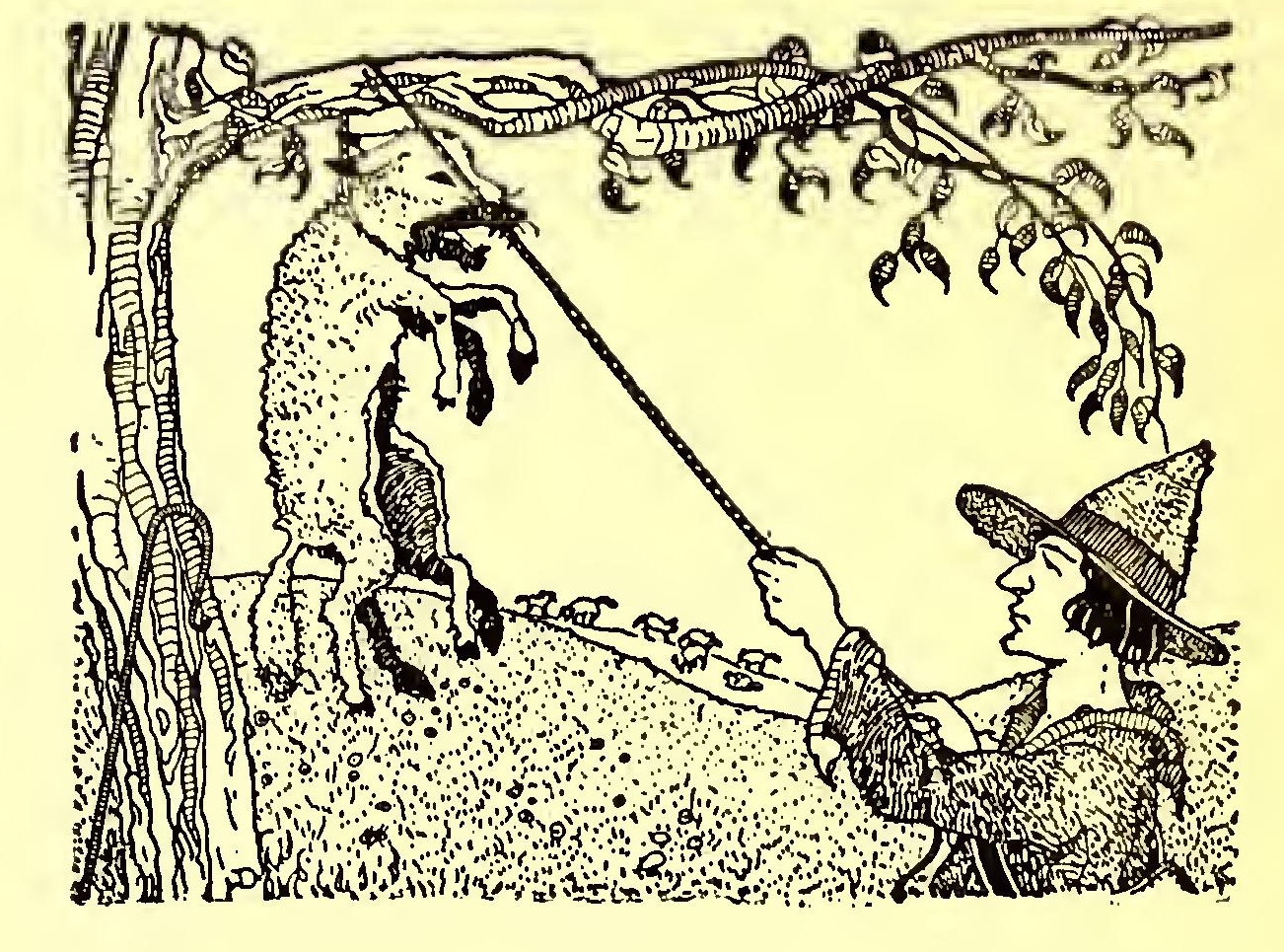 “Climb up, my child, and pluck some fruit from the tree.” Little One Eye climbed the tree. She put out her hand to take a golden apple, but the branch sprang back. This took place every time. Try as hard as she could, she could not get a single apple. Then the mother said:—