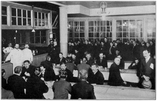 One of the most significant indications of the power of the Municipal Emergency Home is the length and depth of its searching influence. Its hooks will reach clear down to the bottom of the human sewerage, in the dark channels of life, altogether unknown to the “other half” of our human society. Without disparaging the splendid work of other helping agencies in the respective communities, it cannot be denied that their influence, their hooks of help, hang too high to catch many worthy persons among the vast army of wandering citizens who are in direst need. The “Hang-out,” the “Barrel-house,” and the “Free-flops” receive many times more human drift than Charity Bureaus, Missions and Workingmen’s Homes. This is seen to be inevitable when the conditions are rightly understood.