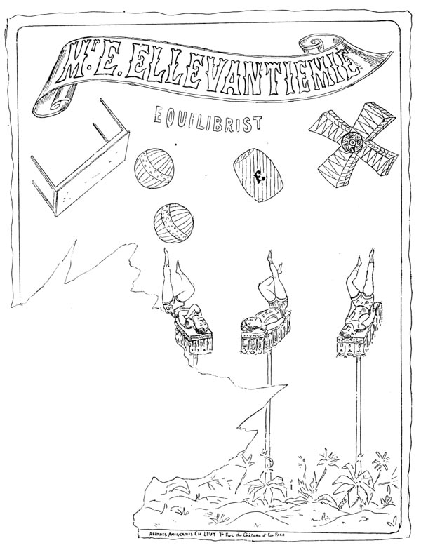 But if we consult an etymological dictionary we shall find that the word SALTIMBANQUE, which is more generally used than BANQUISTE, is derived from a definite root: SALTIMBANQUE, s. m., from the Italian word SALTIMBANCO: who vaults on a bench (Latin, SALTARE IN BANCO). In Italian we also find the word CANTIMBANCO, a platform singer. I must add that when, after tracing out the etymology of the words SALTIMBANQUISTE and banquiste, we search for the origin of the word banker, we shall find that the same radical, BANCO, is the root of these three derivatives. In the old fairs two personages were allowed to erect a small platform, a “banc”—the money-changer and the acrobat. Perhaps the “banc” already served as a spring-board, giving both the BANKER and the BANQUISTE a greater impetus in their leap; perhaps we must even look back to the same date to find the exact origin of the now common expression “LEVER LE PIED” (to abscond).