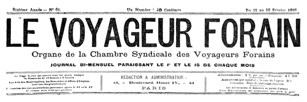 The less important men were the first to organize [p025] themselves. This is already the sixth year of publication of the Voyageur Forain,2 the organ of the syndical chamber of forain travellers, a fortnightly newspaper, published on the 1st and 15th of each month. A notice, always placed above the leading article, informs the readers that “the syndical chamber of forain travellers admits into its ranks all those, whether rich or poor, who honourably earn their livelihood by instructing or amusing the public, or by retail trade.”