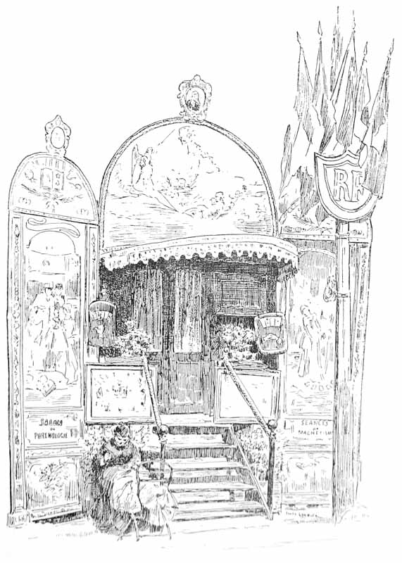 The origin of all these troupes of mountebanks, of every [p023] one of these travelling shows, is lost in the mist of ages. At what epoch were founded the Théâtre Vivien, the Théâtre de Saint-Antoine, the theatres of the Enfer and of the Physicien Delisle? In what century did Mouza-ba-baloued first turn his prophetic wheel under the awning of his caravan? I assure you that it is beyond the recollections of grandchildren or of their grandfathers. At all events, it is certain that from our birth we feel some curiosity mingled with a delicious dread of the mountebank, the picturesque wanderer, who passes our home at the same date in every year—like the migratory birds—who disappears one morning, without any one knowing where he has gone, or even with any certainty where he has come from; an ambiguous individual whom travellers on the high road pass as evening falls, encamped on the wayside, his kettle installed on a heap of stones, his thin steed munching the dusty grass, his half naked children wandering round the caravan, whilst the light shining through the little red curtains in the window throws the semblance of a plash of blood on the road.