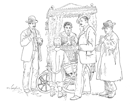 The office of this picturesque newspaper is situated in the [p026] Boulevard Henri IV., at the end of a courtyard, above a stable. There I found an extraordinary Bohemian smoking a short pipe, lengthened by a quill, who in himself formed the whole editorial staff of the Voyageur Forain. This man of letters edits the notices of the Fairs, the Correspondence, and all the technical part of the newspaper. The rest of the number is composed of articles by the members of the syndical council. They consist chiefly of diatribes, directed against the party of “bourgeois,” who form a separate band, written in forcible language, which renders them most amusing to any one interested in French slang.