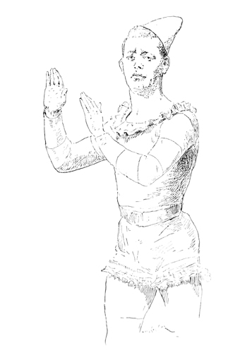 With these resources the performance of a pantomime was easily arranged, and these spectacles are one of the chief [p326] attractions of the entertainments given in the Rue Benouville. It was here that Félicien Champsaur made the first trial of contemporary pantomime by which he amuses us without introducing the form of Pierrot or the bat of Harlequin.