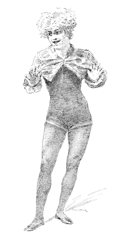 The charming Mademoiselle Rivolta, from the Eden, appeared disguised as a little Spring looking for her course. No one had thought of using her to fill a lake, rush down a waterfall or turn a mill. She therefore wandered about the Cirque Molier, shedding floods of tears.