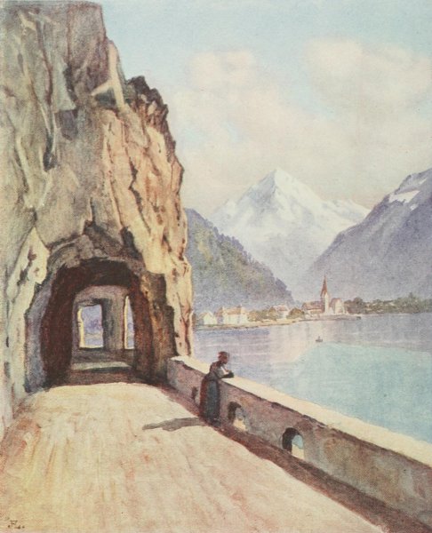 One would have preferred, no doubt, to have approached this inner shrine of the hills—which is also the inner shrine of the great traditions of Swiss liberty—with somewhat less obtrusive parade of the engineering triumphs of the58 nineteenth century. One remembers for the moment how William and Dorothy Wordsworth came hither, and on foot, in 1820. "We descended," writes Dorothy in one of her journals, "by a long flight of steps, into the Vale, and, after about half a mile's walking, we arrived at Brunnen. Espied Wm. and M. [her brother, William, and his wife] upon a crag above the village, and they directed us to the Eagle Inn, where I instantly seated myself before a window, with a long reach of the Lake of Uri before me, the magnificent commencement to our regular approach to the St. Gothard Pass of the Alps. [Hitherto their approach from Calais had been devious, by way of the Rhine and the Oberland.] My first feeling was of extreme delight in the excessive beauty of the scene—I had expected something of a more awful impression from the Lake of Uri; but nothing so beautiful." There was then no St. Gothard railway; no over-weening hotels; not even, perhaps, a steamboat on the lake!