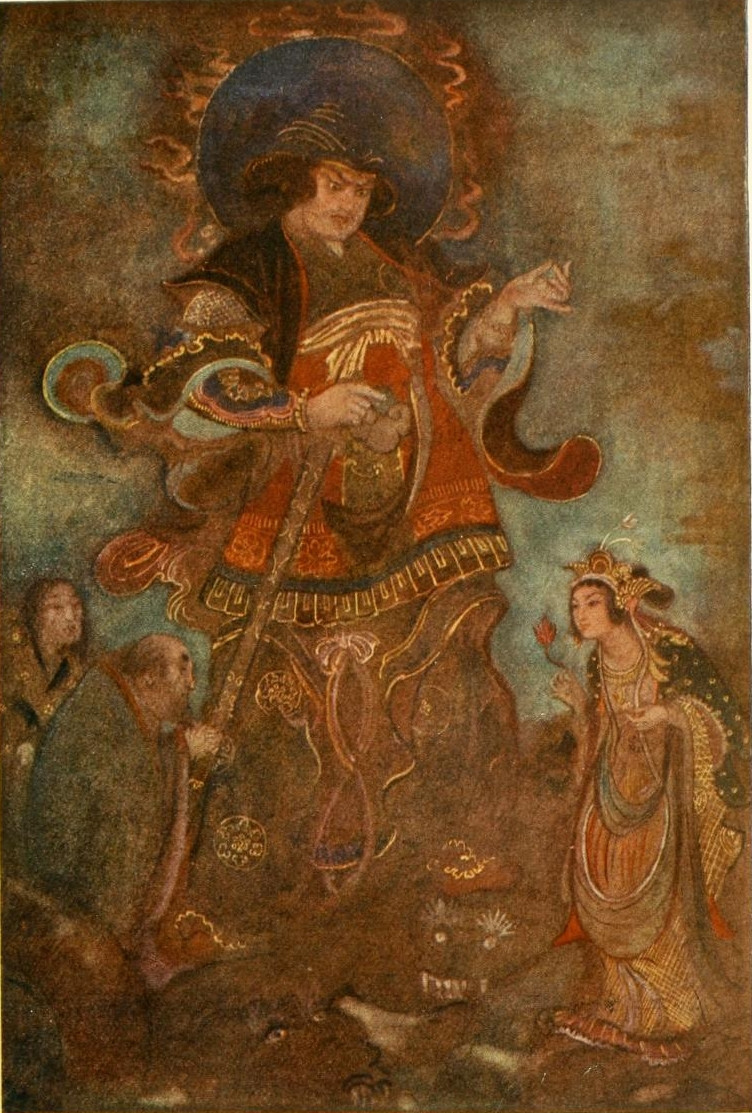 Lafcadio Hearn wrote in one of his letters: "The fairy world seized my soul again, very softly and sweetly—as a child might a butterfly," and if we too would adopt a similar spirit, we shall journey to the Land of the Gods, where the great Kōbō Daishi will write upon the sky and running water, upon our very hearts, something of the glamour and magic of Old Japan. With Kōbō Daishi for guide we shall witness the coming of Mount Fuji, wander in the Palace of the Sea King and in the Land of Perpetual Youth, watch the combats of mighty heroes, listen to the wisdom of saints, cross the Celestial River on a bridge of birds, and when we are weary nestle in the long sleeve of the ever-smiling Jizō.