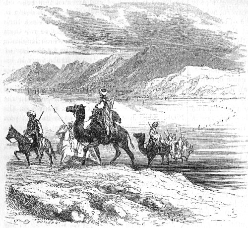 After the destruction of Sodom and Gomorrah, the valley of the Dead Sea seemed to be forsaken of God, and to be abhorred and shunned by man, so that it remained for a great many centuries, the very type and symbol of solitude, desolation, and death. A few wild Arabs dwelt along its shores, building their rude and simple villages in the little dells that open among the mountains that border it, and feeding their camels on the scanty[Pg 581] herbage which grew in them. Now and then some party of Crusaders, or some solitary pilgrim travelers, descended the valley from the fords of the Jordan, till they reached the sea—or looked down upon it from some commanding position among the mountains, on the eastern or western sides—and caravans or beasts of burden were accustomed to go to its southern shores to procure salt for the people of the interior. Through these and other similar channels, vague and uncertain tidings of the deadly influences of the sea and of the awful solitude and desolation which reigned around it, came out, from time to time, to more frequented regions, whence they spread in strange and exaggerated rumors throughout the civilized world. It was said that the waters of the sea filled the gloomy valley which they occupied with influences so pestiferous and deadly that they were fatal to every species of life. No fish could swim in them, no plant could grow upon their shores. It was death for a man to bathe in them, or for a bird to fly over them; and even the breezes which blew from them toward the land, blighted and destroyed all the vegetation that they breathed upon. The surface and margin of the water, instead of being adorned with verdant islands, or fringed with the floating vegetation of other seas, was blackened with masses of bitumen, that were driven hither and thither by the winds, or was bordered with a pestiferous volcanic scum; while all the approaches to the shores in the valley below were filled with yawning pits of pitchy slime, which engulfed the traveler in their horrid depths, or destroyed his life by their poisonous and abominable exhalations. In a word, the valley of the Dead Sea was for two thousand years regarded as an accursed ground, from which the wrath of God, continually brooding over it, sternly excluded every living thing. Within the last half century, however, many scientific travelers have visited the spot, and have brought back to the civilized world more correct information in respect to the natural history of the valley.