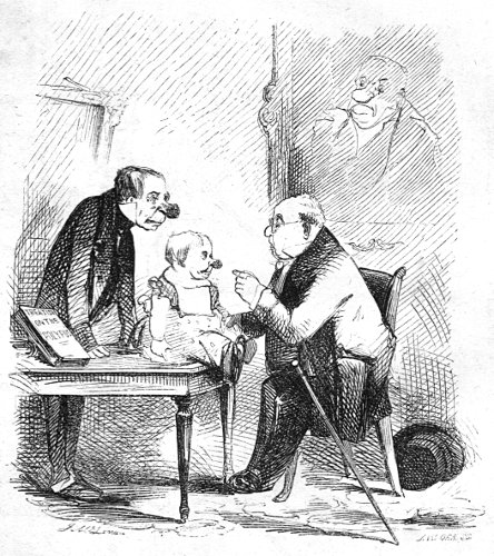Small Juvenile (with an eye to the Reward for killing Dogs).—"Doggy, doggy, Here's a Rat! Catch him—Stu-boy!"