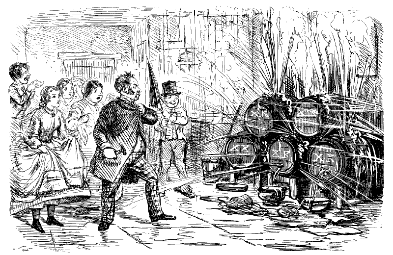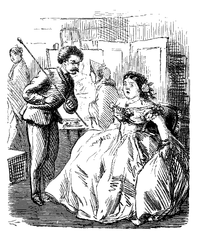 THIS IS THE CRITICAL POSITION OF LOUISA AND CAPTAIN CHARLEY BANG—HIS WHISKER CAUGHT IN HER EARRING, AND PAPA KNOCKING AT THE DOOR!
