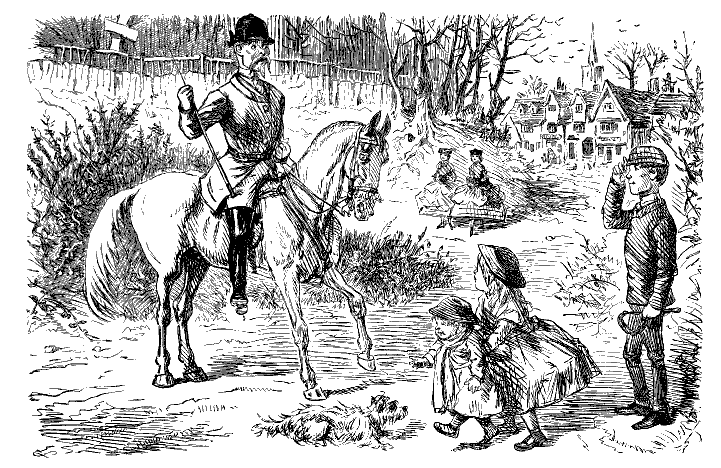 Alfred. "OH, IF YOU PLEASE, UNCLE, WE WANT TO PLAY AT BEING WILLIAM TELL; WILL YOU BE SO KIND AS TO STAND WITH THE APPLE ON YOUR HEAD?"