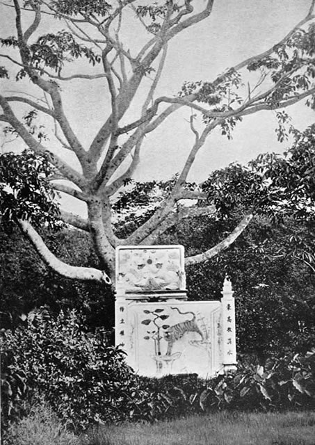 The fragments of bone are now subjected to a long and tedious process of purification, after which they are buried at the foot of a tree, which is carefully noted, as being only a temporary depository. For the next seven years on each anniversary the family dig up the box, carry it back to their house, and offer sacrifices in its honour. After the seventh year the interment is permanent. A spot is chosen near to the best of the family ricefields, trees are planted round it, and a tombstone is erected.