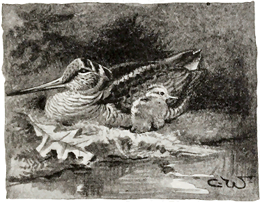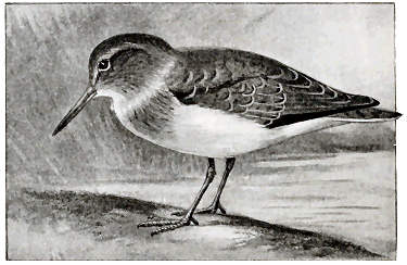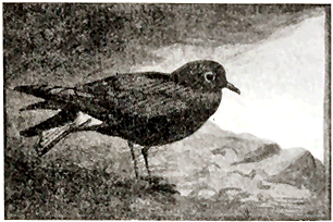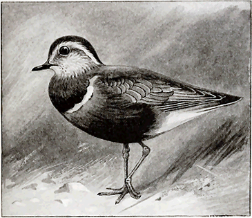 The Dipper and the Gray Wagtail are the two characteristic birds of the upland brook and river-side, rarely if ever seen anywhere else under normal circumstances, and, so far as our observations go, their happy lives are passed in much the same manner on the streams of both northern and southern shires, with the one exceptional movement to more sheltered areas on the part of the latter species in boreal localities. There is, however, another charming bird of the mountain streams which we cannot pass unnoticed, and that is the Common Sandpiper, or “Summer Snipe” as it is called in many districts. [29] But this species is by no means exclusively confined to the banks and waters of the upland streams; neither is it a permanent dweller in such localities. It is a frequenter of our rivers and streams during summer only, the season of their greatest attractiveness; speeding south to Africa like the Swallows when autumn creeps over the uplands. From Cornwall to the Shetlands, wherever there are mountain streams and upland pools we may meet with the Common Sandpiper between the months of May and September, but it is in the northern shires that the bird becomes most abundant, say from the Peak district onwards. Our experience of this engaging bird has been a lifelong one. Each succeeding spring we used to note its arrival in the old accustomed haunts on the banks of the Yorkshire streams and moorland pools towards the end of April. It appears upon our Devonshire and Cornish waters nearly a fortnight earlier, yet farther north, in the Highlands, it is seldom seen before the first or second week in May. The return journey varies in a corresponding manner, August and September marking its southern departure from the north; but in the south it lingers into October, November, and even December—not, however, by the stream side, but on the sea-shore. The persistency with which this Sandpiper returns each year to certain localities, and its habit of nesting in the same spot summer [30] after summer after a prolonged absence of seven months and a double journey of thousands of miles, are not the least attractive portions of its economy. For more summers than we can now recall, the streams and reservoirs at Hollow Meadows and Red Mires—within an hour or so’s walk of Sheffield—were visited by many pairs of Summer Snipes, and their nests came under our observation with unfailing certainty. Two pairs of these birds were remarkably conservative in their nesting-grounds, and used to return each summer to one spot of ground no larger than our writing-table, and there make their nests—one pair on the steep banks of a conduit between the reservoirs, the other on a few square yards of gravelly ground beside Wyming brook. We could always depend upon finding the nests of other pairs within a hundred yards of the stream banks on certain lengths of the water. We would hazard the conjecture that descendants of these birds continue to do so to the present day. During summer the Sandpiper was quite as familiar an object along these northern streams as the Dipper or the Gray Wagtail. Many a time have we seen the three species by the water-side together. Farther north, in Scotland, this Sandpiper becomes even more numerous, and in some parts of the Highlands is, or used to be, most unaccountably mixed up with the Dipper. The latter term included both species, the [31] keepers not distinguishing between them. We have heard the Sandpiper called a “Water-crow” in various parts of Skye especially. Few birds evince more anxiety at the nest, or when their helpless chicks are just abroad. For the newly-laid eggs we cannot recall an instance of this species displaying any concern; but when those eggs are deeply incubated or the young hatched out the behaviour of the female bird especially becomes very different. She will feign a broken wing or lameness, or endeavour to draw all attention upon herself by running just out of reach of any observer foolish enough to give pursuit. But once the young birds have concealed themselves the parent flies away, or circles about in the air, generally being joined by her mate. The four handsome pear-shaped eggs—pale buff, splashed and spotted with rich brown and gray—in their scanty nest, usually made beneath the shelter of a heath tuft or bunch of grass, require no special protection from the parent, for they harmonize so closely in tint with surrounding objects that discovery is difficult in the extreme, even when we know the exact location of their resting-place. Curiously enough the Sandpiper is not aquatic in its habits. It never swims nor dives save when wounded, but obtains its food whilst tripping round the muddy and sandy portions of the water’s edge. In early summer, just after their arrival, the cock [32] birds may frequently be seen running along the tops of walls and fences with outspread drooping wings, or even soaring into the air uttering a shrill note, both actions being connected with courtship and love. The usual note of the Common Sandpiper is a shrill weet uttered several times in succession, and heard most frequently as the bird rises startled from the bank and pursues its way across the water, often so low as to strike the surface with its wings.