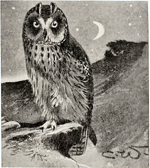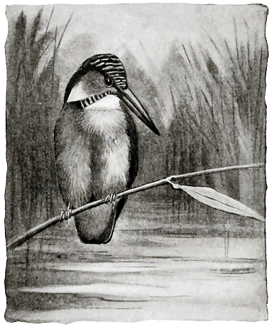 Although we have had not a little experience of the Dipper on the streams of a southern county we are bound to confess that the bird seems somewhat [19] out of place upon them, possibly because we have been so accustomed to his society amidst wilder surroundings in much more northern shires. We picture him best upon the wild trout streams of Yorkshire and Derbyshire, or as a tenant of the dancing burns of the Highlands and the Western Isles. Here he is one of the most characteristic species of the stream, constantly attached to the turbulent foam-flecked waters, part and parcel of the scenery itself. As a musician the Dipper does not take a very prominent place in the avine chorus, but his music is in full harmony with its wild surroundings, though often overpowered by the noise of the torrent—a low-pitched jerky and uneven carol, not very long-continued if uttered at frequent intervals. Perhaps we might not be strictly accurate in describing the Dipper as a habitual perennial songster like the Robin, nevertheless he warbles now and then during the winter months, and is one of the first birds to resume regular music in the early spring. We are assured that the Dipper sings at intervals during all the rigour of a Scotch winter, proof of his robustness and hardy temperament. In Devonshire his winter song might be naturally expected; for there the Song Thrush and the Sky-lark are musical enough at that season, although mute, or nearly so, in northern shires. We have listened to his wild uneven music on some of the [20] Yorkshire streams during winter when icicles a couple of feet in length have draped the rocks, or when the surrounding country-side has been covered deep with snow. Unfortunately, almost everywhere the Dipper somehow has got a bad name—a reputation amongst anglers for destroying the spawn of sporting fishes. Like the poor Owl, and not a few other feathered outcasts, he is universally persecuted for these imaginary misdeeds. But in reality he is one of the actual preservers of the ova he is accused of eating, for his food largely consists of larvæ of certain insects which in that stage of their existence are particularly destructive to the spawn. We have dissected a great many Dippers at one time and another from many different localities, and have always been much impressed with the uniform similarity of the contents of their stomachs—a little grit and the remains of insects and worms. We have, however, known the Dipper in exceptional cases to prey upon small fish, but are convinced, by the experience of a lifetime, that such food is taken so rarely as scarcely to deserve mention at all. Whenever we pause to watch the aquatic gambols of this sprightly bird, we feel less inclined to wonder why a past generation of naturalists included it amongst the water-fowl. The way it enters the quiet pools or the swifter running reaches of the stream, dashing beneath the surface from some water-encircled stone, [21] and rising again some distance away just to take breath and then again to disappear, is never without a certain element of surprise, accustomed as we are to the habits of this bird. We can recall a northern stream—situated in the Rivelin valley close to Hollow Meadows—specially favourable for watching the actions of the Dipper. In some parts it was confined by lofty banks, upon which we could lie concealed and look right down into the clear water, and here, when the pair of Dippers that frequented the spot were on the feed, we might watch their every movement whilst they were under the surface. This stream is used as a conduit to convey the water from one large reservoir to another, and was consequently often in flood. We have often remarked that the Dippers were exceptionally busy in searching for food on these occasions, doubtless because insects and larvæ were disturbed by the unusual flow of water. Such times, however, were not favourable for observation. We liked best to watch the ways of these charming birds when the stream flowed slower, when the water was clearer, and certain reaches were almost undisturbed by the current. The Kingfisher, as most readers may know, has but one method of feeding, by plunging into the water and returning to the air almost at once. The Dipper, on the other hand, in his quest for sustenance, is as much aquatic as a Grebe or a Moorhen. He is quite [22] as much at home in the water as in the air or on dry land. Sometimes he walks deliberately from the bank or from a sloping moss-covered stone into the water; at others he takes a short flight over the stream and drops suddenly down into the pool; whilst yet again we have often seen him arrest a long-continued flight—which, by the way, follows every bend of the brook—and, fluttering for a moment, poise and disappear beneath the surface at once. The Dipper only maintains his subaqueous position by much evident exertion of his wings and legs and feet. Generally the wings are kept in motion whilst the bird searches the bed of the stream, but sometimes these may be seen at rest, and the body is kept beneath the water by the feet clutching the big stones and the strands of moss and other aquatic plants. Not only does the bird float buoyantly enough upon the water, but it swims well, often for many yards at a time. Dippers are exceedingly attached to certain reaches of the stream and to favourite nesting sites, using the latter year after year, often in spite of much disturbance. In this special valley we always used to find the nest in one particular spot—wedged under an overhanging rock on the bank of the stream. The nest of this species is a very characteristic one, and cannot readily be mistaken for that of any other British bird. In external appearance it bears some resemblance to that of the Wren, [23] being of the same globular form, but a cursory examination will soon set any doubt at rest. In a great many—we might almost say the majority of—cases the nest is made outwar