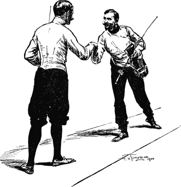 One evening—I quite forget how it came about—we found ourselves talking about fencing. Some one’s casual remark, as erratic as the blue wreaths of smoke that floated vaguely towards the ceiling, was taken up by some one else, and led to other remarks, which gradually became more definite and finally solidified into a conversation.