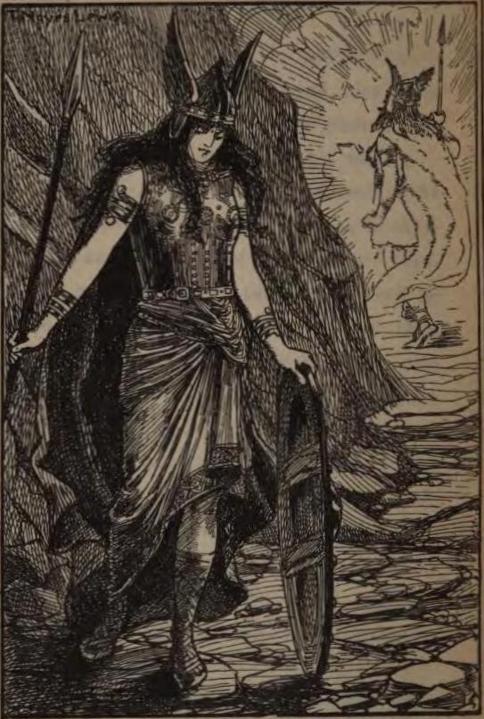 "Thou sayest it," said he, "and thou art outcast from me utterly. Never again from Walhalla shalt thou storm forth at my bidding on thy joyous errands, nor ever again shall I show to thee the heroes thou shalt fight and slay, guiding their souls at eventide to my halls, there to make merry at the joyful feastings of the gods. Nor ever again when the mirth grows louder, deep into the night, shalt thou hand me the wine-cup, nor again shall our souls mingle in the sweet caresses of father and daughter as was our wont. For out of the company of gods thou art taken, and thy place shall know thee no more, and thou, that fair flower-bud that grew so strong and sweet on the abiding stem of my godhead, art nipped off and cast away. For the bond between us is broken, and for ever art thou banished from before my face, and out of the light of mine eyes."