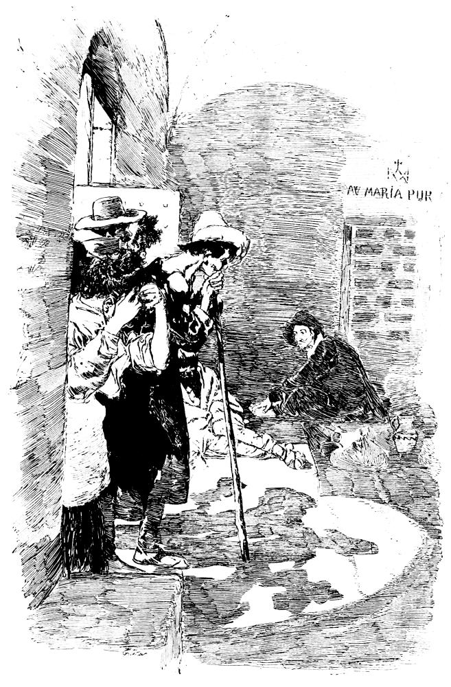 I have no intention of going into the analysis of the motives which prompted Vierge to undertake the illustration of Pablo de Segovia. I have never asked him why he took it up, and most likely if he were asked it would be impossible for him to suggest any reason, other than that the book appealed to him. I do not believe that any artist could definitely explain why he endeavoured to produce a certain work of art. He merely wanted to do it, and then the opportunity presented itself. Nor do I think the literary artist would know why he wrote a certain novel. The idea came to him, and he had to. The literary man can describe his sensations, and tell you how he actually walked across the street to see a house, or re-wrote a page which did not please him, or hunted for months for a character: it is the fashion for him to do so. The artist experiences the same sensations. He not only has to go across the street to see the house, but he may probably have to stand before it, on the side-walk, for a couple of days amidst the crowd and traffic, working under the most difficult conditions; he too has to search for his model, and, when he has found him, obtain the actual costumes he wants, or have them made. The literary man, too, can get almost all his accessories out of books, or if he has to go to a Museum and cannot send some one, a glance and a few words are enough. The result, if well done, is hailed as great literature; but the artist, who probably has worked quite as long, quite as hard, and put quite as much brains into his work, is told, if he is told anything, that his drawings are pretty. He seldom has the opportunity of showing how well and how faithfully he has done his part. It is more than possible that if he has really studied his subject carefully the author will not like the result, and the public will complain because the artist has given them more than the author was able to make them see for themselves, or else they will demand a photograph because he has made them look at nature with his eyes.