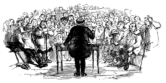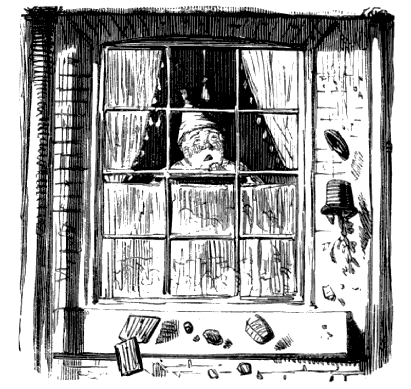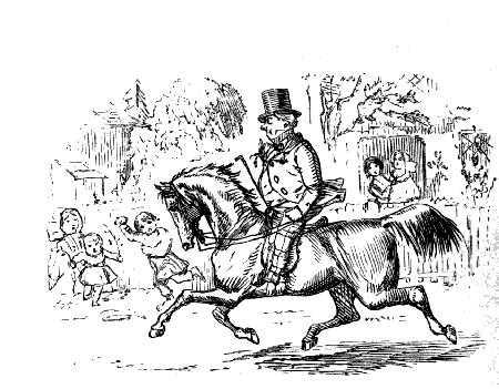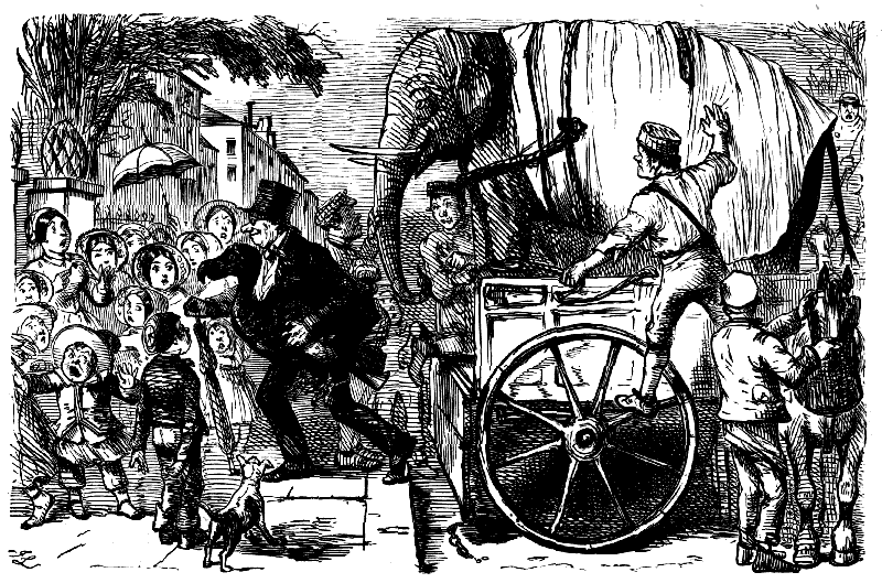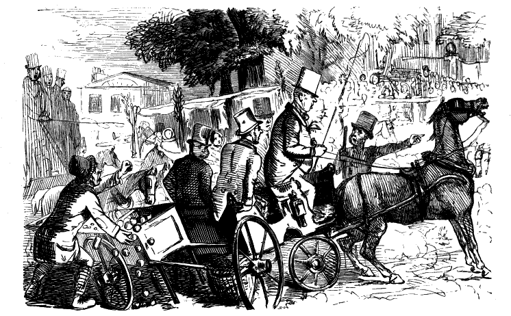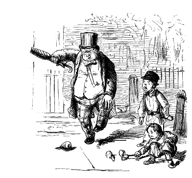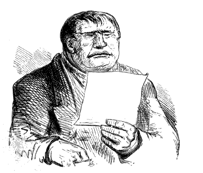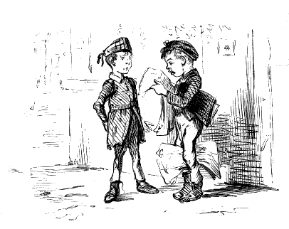 Newspaper Boy (reads). "A GENTLEMAN IN THE N-E-I-G-H—NEIGHBOURHOOD OF——, HAS AT THE PRESENT TIME SEVERAL E-NORMOUS GOOSEBERRIES IN HIS GARDEN, WHICH MEASURE TEN INCHES IN C-I-R-CIR C-U-M-CUM F-E-R-FER E-N-C-E-ENCE CIRCUMFERENCE, AND ARE OF THE A-S-AS ASTON ASTONISHING WEIGHT OF THREE HOUNCES HEACH."