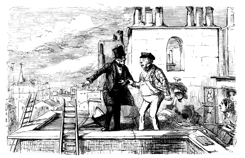 "NOW, THEN, SIR, JUMP UP ON THE ROOF, AND LOOK SHARP, PLEASE, SIR, HERE'S T'OTHER BUS A-COMING."