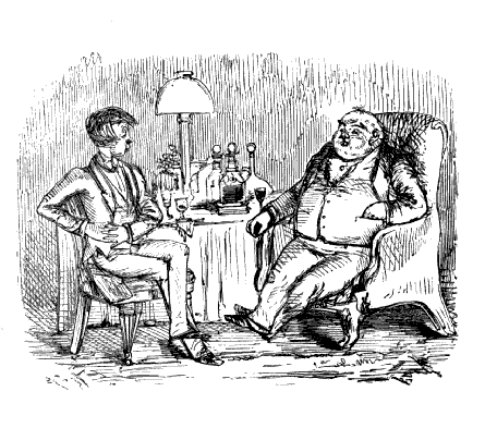 His Friend. "OH, WHAT WHOPPERS! WOULDN'T I LIKE A PINT!"