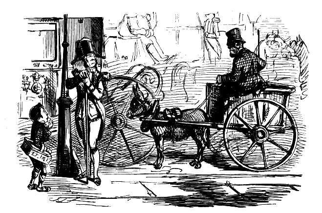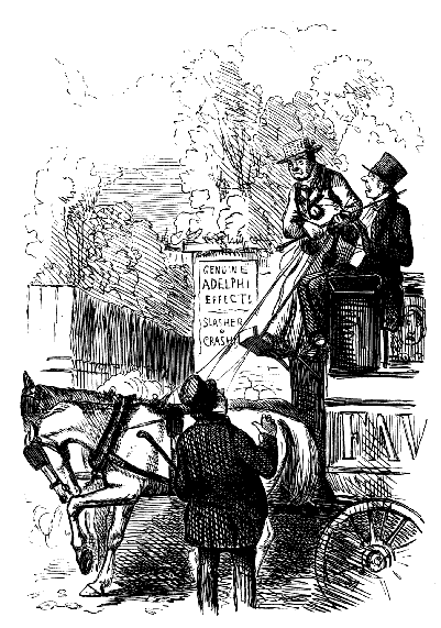 Old Gentleman (politely). "OH, CONDUCTOR! I SHALL FEEL GREATLY OBLIGED TO YOU IF YOU WOULD PROCEED, FOR I HAVE AN APPOINTMENT IN THE STRAND, AND I AM AFRAID I SHALL BE TOO LATE."