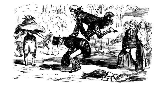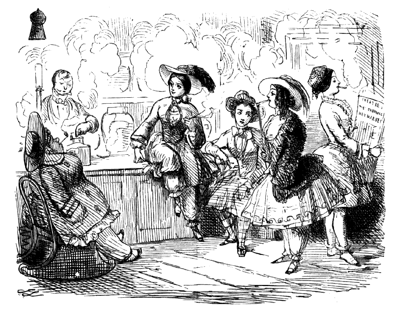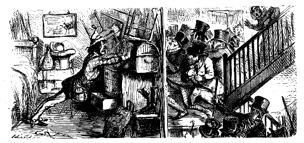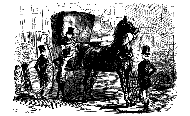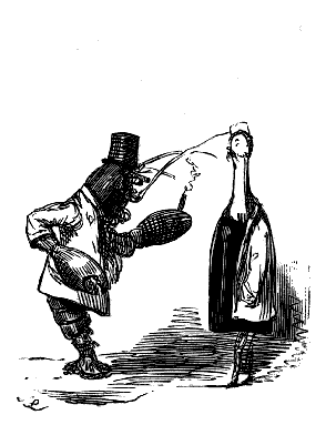 Chorus of Unprotected Females. "CONDUCTOR! STOP! CONDUCTOR! OMNIBUS-MAN! HERE'S A GENTLEMAN HAD AN ACCIDENT AND BROKE A JAR OF LEECHES, AND THEY'RE ALL OVER THE OMNIBUS!"