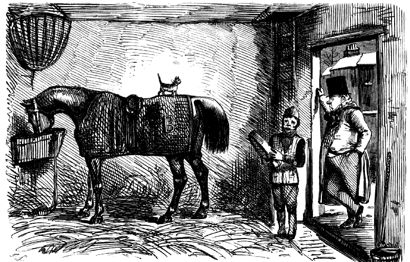 Stable-Keeper (to little Gent). "SET TO KICKING, AND THEN BOLTED INTO A SHOP! DID HE, NOW? AH! HE ALWAYS WAS A LIGHT-'ARTED 'OSS."
