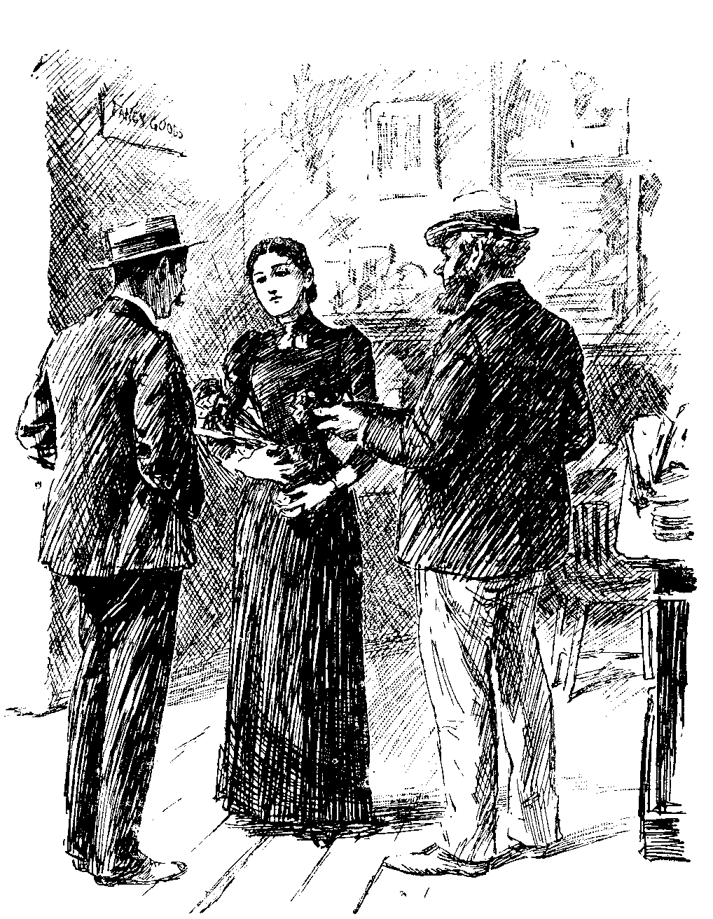 I am glad to see the "Bystander" in the Graphic has recently uttered a startled protest against the fashion, now somewhat overdone, and occasionally objectionably done, of lady-begging for charitable purposes in the London streets. On the sudden apparition of one of these merry half-sisters of charity (were not the Pecksniffian daughters Charity and Merry?) Mr. Ashby Sterry became well-nigh hysterrycal, and his generosity being temporarily paralysed, he fled, with pockets tightly buttoned. For the moment he was no longer the "Bystander," whose motto is that of Captain Cuttle, "Stand by," but, as though he had heard the command to "Stand and deliver," our sturdy "Bystander" became a fugitive from before the face of the giddy charity girl, and thus at one "go" saved his halfpence and his honour. For his reputation would have suffered had he impolitely rebuffed his fair unfair assailant. He did well to flee, he did still better to write and publicly complain. We trust that this process adopted by the Sterry O'Type (a fine old Irish title by the way) may have its due influence, and that the abuse, which has become thus Sterry O'Typed, of a fashion good in itself and its origin, may soon cease to exist. En attendant, Mr. Punch is pleased to know that the "Bystander" is still running on, and not likely to come to a standstill. 134 135