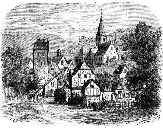 Was ist das für eine kleine Stadt zwischen den grünen buchenbewachsenen Bergen? Die roten Dächer schimmern in der Abendsonne; da und dort laufen die Kornfelder an den Berghalden hinauf; aus einem Tal kommt rauschend und plätschernd ein klarer Bach, der mitten durch die Stadt hüpft, einen kleinen Teich bildet, bedeckt am Rande mit Binsen und gelben Wasserlilien, und in einem andern Tal verschwindet. Ich kenne das alles; ich kann die Bewohner der meisten Häuser mit Namen nennen; ich weiß, wie es klingen wird, wenn man in dem spitzen schiefergedeckten Turm jener hübschen alten Kirche anfangen wird zu läuten. Habe ich nicht oft genug mich von den Glockenseilen hin und her schwingen lassen?