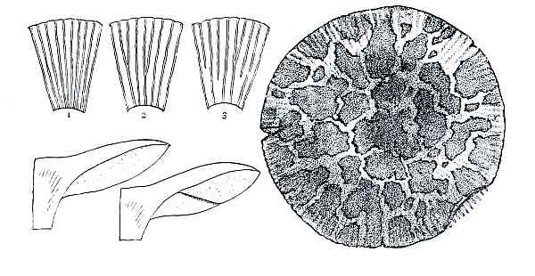 Moreover, even the most conservative mycologist will certainly admit that out of the hundred and fifty of our admittedly esculent species of fungi there might be segregated a few which bear such conspicuous characters of outward form and other unique individual features—such as color of spores, gills, and tubes, taste, odor, surface character, color of milky juice, etc.—as to render them easily recognizable even by the "general reader."
