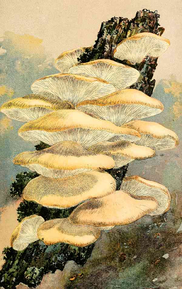 The special character of my volume, then—the collateral consideration of the fungus as food—will be sufficient excuse for the omission of a merely technical discourse upon the structure, classification, and vegetation of fungi as a class—a field so fully covered by other authors more competent to discuss these lines of special science, and to a selection of whose works the reader is referred in the list herewith appended, to a number of which I am indebted for occasional quotations. A general idea of the methods of dissemination and habitats of fungi will be found in the final chapter on "spore-prints," while under the discussion of the "Amanita," Agaricus [Pg 9] campestris, and the "Fairy Ring" the reader is referred to a condensed account of the methods of vegetation and growth of fungi sufficient for present purposes. Other references of similar character will be noted under "Fungi," in Index.