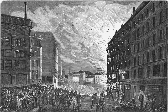 L'INCENDIE DE LA RUE MONGE.--Les pompiers essayant