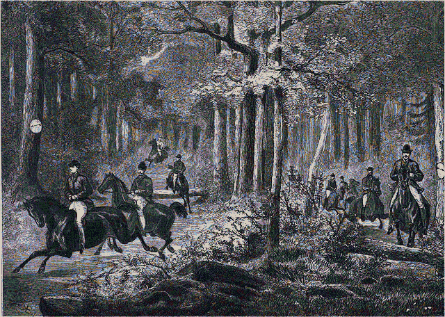 Les cavaliers, réunis à rendez-vous au carrefour de la Croix de Toulouse, sont tous en costume de chasse. Ils se préparent à courir dans une direction inconnue. Tout au plus s'ils savent à quel endroit aboutira le parcours. Au signal du starter, ils vont s'élancer et galoper partout où ils verront des cartons blancs et rouges collés aux arbres et des papiers blancs par terre. C'est la fantaisie de M. Dennetier qui a semé les papiers le long du chemin et garni les arbres de leurs cartons-indicateurs.