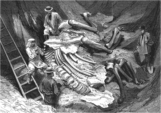 Dans quelques jours nous donnerons le résumé des découvertes de la première fouille; ce que nous soumettons aujourd'hui à nos lecteurs, c'est le résultat de la seconde, résultat exceptionnel et qui, sauf les découvertes faites dans les glaces de la Sibérie, n'a été nulle part obtenu si complet; c'est le squelette entier, intact, d'un éléphant antédiluvien, tel que n'en possède aucun musée, sauf celui de Saint-Pétersbourg.