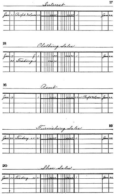 Sample ledger accounts, 91
