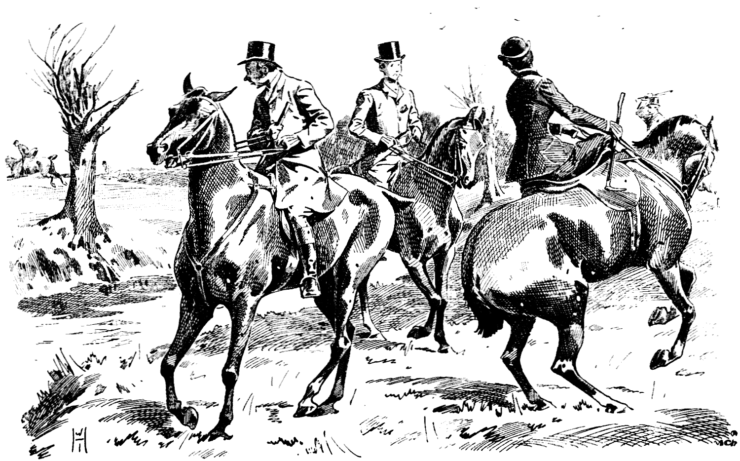 Miss Di (unable to get her Horse to face the water as a jump). "Oh, do please, one of you, just try if that Place is fordable!"