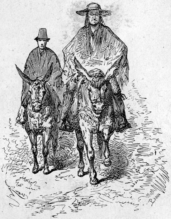 Ayrton and Olbinett took their places respectively in front and in the rear part of the cart, while Glenarvan, the major, Paganel, Robert, Captain Mangles, and the two sailors, mounted their horses.—p. 312.