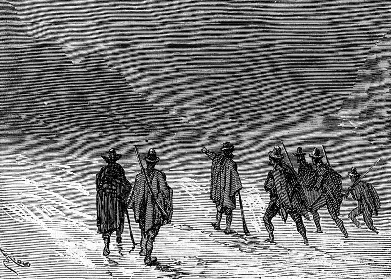 The two ladies exerted themselves heroically, but their strength was failing every hour. They dragged themselves along, they no longer walked.—p. 433.